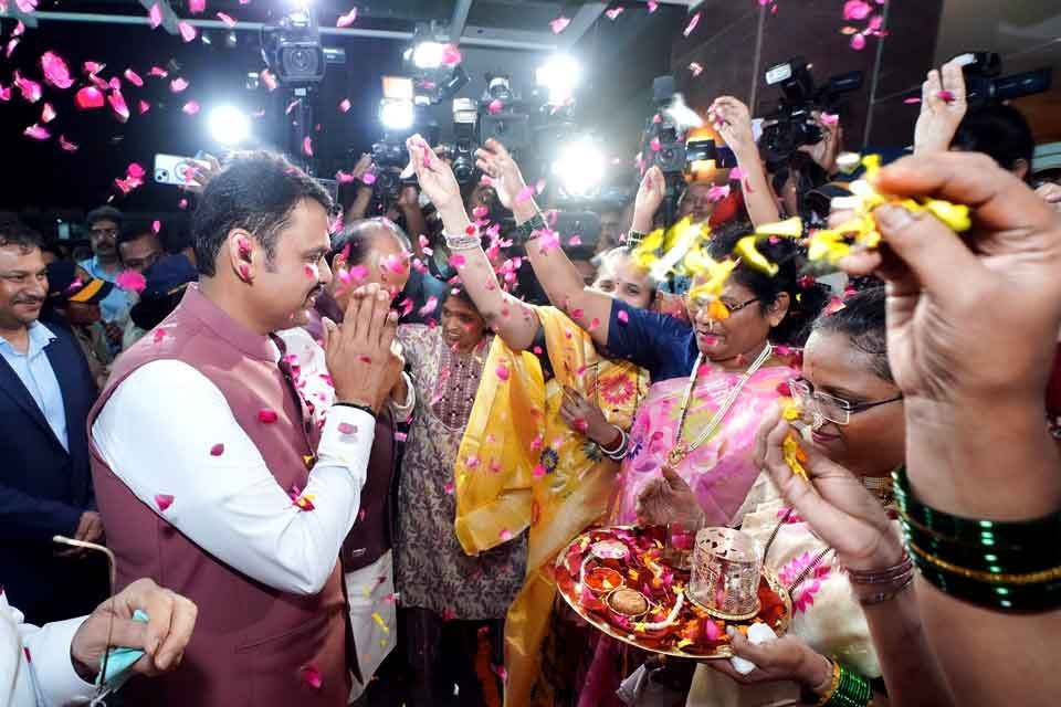 ਰਾਜਪਾਲ ਸੀਪੀ ਰਾਧਾਕ੍ਰਿਸ਼ਨਨ ਨੇ ਫੜਨਵੀਸ ਨੂੰ ਸਹੁੰ ਚੁਕਾਈ। ਪ੍ਰਧਾਨ ਮੰਤਰੀ ਮੋਦੀ ਨੇ ਸਹੁੰ ਚੁੱਕ ਸਮਾਗਮ ਤੋਂ ਤੁਰੰਤ ਬਾਅਦ ਦੇਵੇਂਦਰ ਫੜਨਵੀਸ ਨੂੰ ਵਧਾਈ ਦਿੱਤੀ। ਇਸ ਸਮਾਰੋਹ ਵਿੱਚ ਕੇਂਦਰੀ ਗ੍ਰਹਿ ਮੰਤਰੀ ਅਮਿਤ ਸ਼ਾਹ, ਰੱਖਿਆ ਮੰਤਰੀ ਰਾਜਨਾਥ ਸਿੰਘ ਸਮੇਤ ਹੋਰਨਾਂ ਨੇ ਹਾਜ਼ਰੀ ਭਰੀ। ਵੱਖ-ਵੱਖ ਰਾਜਾਂ ਦੇ ਮੁੱਖ ਮੰਤਰੀ, ਜਿਵੇਂ ਕਿ ਯੋਗੀ ਆਦਿਤਿਆਨਾਥ (ਉੱਤਰ ਪ੍ਰਦੇਸ਼), ਨਿਤੀਸ਼ ਕੁਮਾਰ (ਬਿਹਾਰ), ਵਿਸ਼ਨੂੰ ਦੇਵ ਸਾਈਂ (ਛੱਤੀਸਗੜ੍ਹ), ਪ੍ਰਮੋਦ ਸਾਵੰਤ (ਗੋਆ), ਭੂਪੇਂਦਰ ਪਟੇਲ (ਗੁਜਰਾਤ), ਅਤੇ ਪੁਸ਼ਕਰ ਸਿੰਘ ਧਾਮੀ (ਉਤਰਾਖੰਡ), ਵੀ ਸਨ। ਹਾਜ਼ਰੀ ਵਿੱਚ. ਕ੍ਰਿਕਟਰ ਸਚਿਨ ਤੇਂਦੁਲਕਰ ਅਤੇ ਬਾਲੀਵੁੱਡ ਸਿਤਾਰੇ ਸ਼ਾਹਰੁਖ ਖਾਨ, ਸਲਮਾਨ ਖਾਨ, ਰਣਵੀਰ ਸਿੰਘ ਅਤੇ ਮਾਧੁਰੀ ਦੀਕਸ਼ਿਤ ਸਮੇਤ ਪ੍ਰਮੁੱਖ ਹਸਤੀਆਂ ਨੇ ਇਸ ਸਮਾਗਮ ਵਿੱਚ ਸ਼ਿਰਕਤ ਕੀਤੀ।