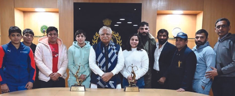 ਇਸ ਮੌਕੇ ’ਤੇ ਮੁੱਖ ਮੰਤਰੀ ਨਾਲ ਮਿਲਣ ਆਏ ਅਰਜੁਨ ਅਵਾਰਡੀ ਸੁਨੀਲ ਕੁਮਾਰ ਤੇ ਅੰਤਿਮ ਪੰਘਾਲ ਨੇ ਕਿਹਾ ਕਿ ਹਰਿਆਣਾ ਦੀ ਖੇਡ ਨੀਤੀ ਨਾਲ ਖੇਡਾਂ ਨੂੰ ਪ੍ਰੋਤਸਾਹਨ ਮਿਲਿਆ ਹੈ, ਵਿਸ਼ੇਸ਼ਕਰ ਕੁਸ਼ਤੀ ਵਿਚ ਹਰਿਆਣਾ ਨੇ ਵੱਖ ਮੁਕਾਮ ਹਾਸਲ ਕੀਤਾ ਹੈ। ਮੁਕਾਬਲੇ ਚਾਹੇ ਕੋਈ ਵੀ ਹੋਵੇ ਹਰਿਆਣਾ ਦੇ ਪਹਿਲਵਾਨ ਮੈਡਲ ਲੈ ਕੇ ਪਰਤੇ ਹਨ।