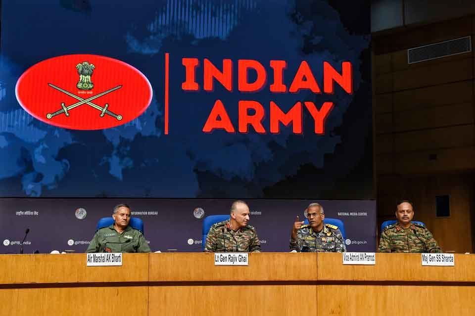 ਭਾਰਤ-ਪਾਕਿਸਤਾਨ ਤਣਾਅ ਅਤੇ ਆਪ੍ਰੇਸ਼ਨ ਸਿੰਦੂਰ ‘ਤੇ ਭਾਰਤੀ ਫੌਜ ਨੇ ਐਤਵਾਰ ਸ਼ਾਮ ਨੂੰ ਇੱਕ ਪ੍ਰੈਸ ਕਾਨਫਰੰਸ ਕੀਤੀ। ਇਸ ਪ੍ਰੈਸ ਕਾਨਫਰੰਸ ਵਿੱਚ ਭਾਰਤੀ ਫੌਜ ਦੇ ਤਿੰਨਾਂ ਵਿੰਗਾਂ, ਥਲ ਸੈਨਾ, ਹਵਾਈ ਸੈਨਾ ਅਤੇ ਜਲ ਸੈਨਾ ਦੇ ਅਧਿਕਾਰੀ ਮੌਜੂਦ ਸਨ। ਪ੍ਰੈਸ ਕਾਨਫਰੰਸ ਵਿੱਚ ਫੌਜ ਦੇ DGMO ਲੈਫਟੀਨੈਂਟ ਜਨਰਲ ਰਾਜੀਵ ਘਈ, ਨੇਵੀ ਤੋਂ ਵਾਈਸ ਐਡਮਿਰਲ ਏਐਨ ਪ੍ਰਮੋਦ ਡੀਜੀ , ਹਵਾਈ ਸੈਨਾ ਤੋਂ ਏਅਰ ਮਾਰਸ਼ਲ ਏ.ਕੇ. ਭਾਰਤੀ, ਏਅਰ ਫੋਰਸ ਏਅਰ ਆਪ੍ਰੇਸ਼ਨ ਇਸ ਪ੍ਰੈਸ ਕਾਨਫਰੰਸ ਵਿੱਚ ਸ਼ਾਮਲ ਹੋਏ। ਤਿੰਨਾਂ ਅਧਿਕਾਰੀਆਂ ਨੇ ਪੀਪੀਟੀ ਰਾਹੀਂ ਪੂਰੇ ਆਪ੍ਰੇਸ਼ਨ ਬਾਰੇ ਜਾਣਕਾਰੀ ਦਿੱਤੀ।
