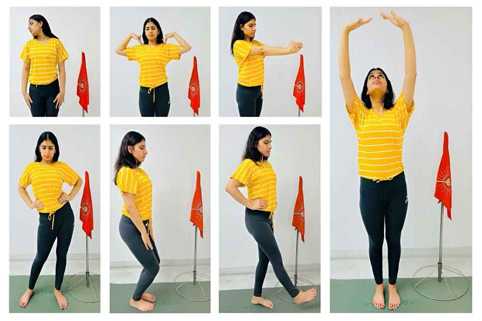 ਅੰਤ ਵਿੱਚ, ਤਾੜ ਆਸਣ ਕਰੋ। ਸਿੱਧੇ ਖੜ੍ਹੇ ਹੋ ਕੇ, ਆਪਣੇ ਪੈਰਾਂ ਦੀਆਂ ਉਂਗਲਾਂ ‘ਤੇ ਆ ਜਾਓ ਅਤੇ ਯਕੀਨੀ ਬਣਾਓ ਕਿ ਤੁਹਾਡੇ ਸਰੀਰ ਦਾ ਭਾਰ ਦੋਵਾਂ ਪੈਰਾਂ ‘ਤੇ ਬਰਾਬਰ ਵੰਡਿਆ ਹੋਵੇ। ਫਿਰ ਆਪਣੀਆਂ ਦੋਵੇਂ ਬਾਹਾਂ ਨੂੰ ਆਕਾਸ਼ ਵੱਲ ਹਥੇਲੀਆਂ ਉੱਪਰ ਕਰਕੇ ਚੁੱਕੋ। ਉੱਜਈ ਸਾਹ ਲੈਂਦੇ ਹੋਏ ਇਸ ਆਸਣ ਨੂੰ ਧਿਆਨ ਨਾਲ ਬਣਾਏ ਰੱਖੋ।