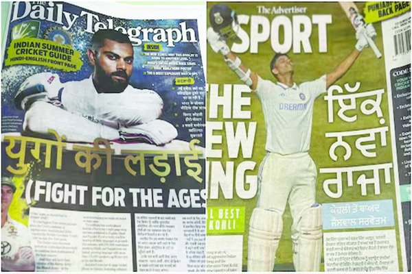 ਵਿਰਾਟ ਕੋਹਲੀ ਦੀ ਤਸਵੀਰ ਨੂੰ ਅਖਬਾਰ ਦੇ ਪਹਿਲੇ ਪੰਨੇ ਉੱਤੇ ਪ੍ਰਮੁੱਖਤਾ ਨਾਲ ਦਿਖਾਇਆ ਗਿਆ ਹੈ। ਇਸ ਤੋਂ ਇਲਾਵਾ ਇਨ੍ਹਾਂ ਅਖ਼ਬਾਰਾਂ ਨੇ ਯਸ਼ਸਵੀ ਜੈਸਵਾਲ ਅਤੇ ਰਿਸ਼ਵ ਪੰਤ ਨੂੰ ਪਹਿਲੇ ਪੰਨੇ ਉੱਤੇ ਛਾਪਿਆ ਹੈ, ਨਾਲ ਹੀ ਹਿੰਦੀ ਵਿੱਚ ਲਿਖਿਆ ਹੈ- ਯੁੱਗਾਂ ਦੀ ਲੜਾਈ… ਉੱਥੇ ਹੀ ਯਸ਼ਸਵੀ ਜੈਸਵਾਲ ਦੀ ਫੋਟੋ ਦੇ ਨਾਲ ਪੰਜਾਬੀ ਵਿੱਚ ਲਿਖਿਆ- ਨਵਾਂ ਰਾਜਾ।