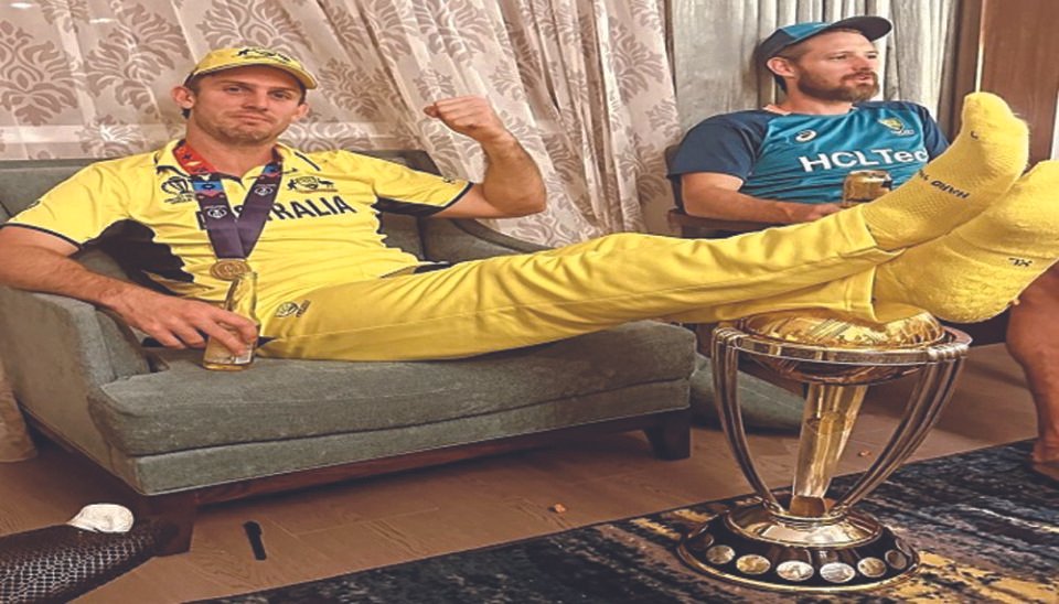 ਅਹਿਮਦਾਬਾਦ – ਭਾਰਤ ਤੇ ਆਸਟ੍ਰੇਲੀਆ ਵਿਚਾਲੇ ਵਿਸ਼ਵ ਕੱਪ ਦਾ ਫਾਈਨਲ ਮੁਕਾਬਲਾ 19 ਨਵੰਬਰ ਨੂੰ ਅਹਿਮਦਾਬਾਦ ਦੇ ਨਰਿੰਦਰ ਮੋਦੀ ਸਟੇਡੀਅਮ ਵਿੱਚ ਖੇਡਿਆ ਗਿਆ। ਆਸਟ੍ਰੇਲੀਆ ਦੀ ਟੀਮ ਨੇ ਇਸ ਮੁਕਾਬਲੇ ਵਿੱਚ ਆਸਾਨੀ ਨਾਲ ਜਿੱਤ ਹਾਸਿਲ ਕੀਤੀ। ਭਾਰਤ ਨੇ ਆਸਟ੍ਰੇਲੀਆ ਦੇ ਸ਼ੁਰੂਆਤੀ 3 ਬੱਲੇਬਾਜਾਂ ਨੂੰ ਜਲਦੀ ਆਊਟ ਕੀਤਾ, ਪਰ ਬਾਅਦ ਟ੍ਰੇਵਿਸ ਹੈੱਡ ਤੇ ਮਾਰਨਸ ਲਾਬੁਸ਼ੇਨ ਦੀ ਸ਼ਾਨਦਾਰ ਬੱਲੇਬਾਜ਼ੀ ਦੀ ਬਦੌਲਤ ਆਸਟ੍ਰੇਲੀਆ ਨੇ 6ਵੀਂ ਵਾਰ ਵਿਸ਼ਵ ਕੱਪ ਦਾ ਖਿਤਾਬ ਜਿੱਤਿਆ। ਇਸੇ ਵਿਚਾਲੇ ਸੋਸ਼ਲ ਮੀਡੀਆ ’ਤੇ ਇੱਕ ਫੋਟੋ ਤੇਜ਼ੀ ਨਾਲ ਵਾਇਰਲ ਹੋ ਰਹੀ ਹੈ, ਜਿਸ ਵਿੱਚ ਆਸਟ੍ਰੇਲੀਆ ਦੇ ਮਿਚੇਲ ਮਾਰਸ਼ ਟ੍ਰਾਫੀ ’ਤੇ ਪੈਰ ਰੱਖ ਕੇ ਬੈਠੇ ਨਜ਼ਰ ਆ ਰਹੇ ਹਨ।ਮਿਚੇਲ ਮਾਰਸ਼ ਦੀ ਇਹ ਫੋਟੋ ਸੋਸ਼ਲ ਮੀਡੀਆ ’ਤੇ ਬਹੁਤ ਜ਼ਿਆਦਾ ਵਾਇਰਲ ਹੋ ਰਹੀ ਹੈ। ਦਰਅਸਲ, ਇਹ ਤਸਵੀਰ ਆਸਟ੍ਰੇਲੀਆਈ ਕਪਤਾਨ ਪੈਟ ਕਮਿੰਸ ਵੱਲੋਂ ਇੰਸਟਾਗ੍ਰਾਮ ’ਤੇ ਸਾਂਝੀ ਕੀਤੀ ਗਈ ਹੈ। ਇਸ ਤਸਵੀਰ ਦੇ ਵਾਇਰਲ ਹੋਣ ਮਗਰੋਂ ਭਾਰਤੀ ਫੈਨਜ਼ ਬਹੁਤ ਜ਼ਿਆਦਾ ਗੁੱਸੇ ਵਿੱਚ ਦਿਖਾਈ ਦੇ ਰਹੇ ਹਨ।ਕਈ ਫੈਨਜ਼ ਨੇ ਤਾਂ ਇਹ ਤੱਕ ਕਹਿ ਦਿੱਤਾ ਹੈ ਕਿ ਤੁਸੀਂ ਇਹ ਟ੍ਰਾਫੀ ਡਿਜ਼ਰਵ ਨਹੀਂ ਕਰਦੇ ਤੇ ਕੁਝ ਨੇ ਉਨ੍ਹਾਂ ਦੀ ਤੁਲਨਾ ਮੇਸੀ ਨਾਲ ਕੀਤੀ ਹੈ। ਕਿਉਂਕਿ ਮੇਸੀ ਨੇ ਜਦੋਂ ਵਿਸ਼ਵ ਕੱਪ ਦਾ ਖਿਤਾਬ ਜਿੱਤਿਆ ਸੀ ਤਾਂ ਅਗਲੇ ਦਿਨ ਉਹ ਟ੍ਰਾਫੀ ਨੂੰ ਆਪਣੇ ਕੋਲ ਰੱਖ ਕੇ ਸੁੱਤੇ ਦਿਖਾਈ ਦੇ ਰਹੇ ਸਨ।