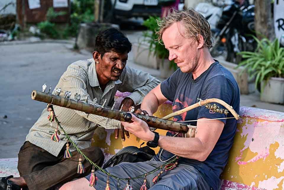 ਪੁਸ਼ਕਰ – ਸ਼ੁੱਕਰਵਾਰ ਨੂੰ ਵਿਸ਼ਵ ਸੈਰ-ਸਪਾਟਾ ਦਿਵਸ ਦੇ ਮੌਕੇ ‘ਤੇ ਪੁਸ਼ਕਰ ਵਿਚ ਇਕ ਵਿਦੇਸ਼ੀ ਸੈਲਾਨੀ ਨੇ ਰਾਜਸਥਾਨੀ ਲੋਕ ਸਾਜ਼ ਰਾਵਣਹਠ ਨੂੰ ਵਜਾਉਣਾ ਸਿੱਖ ਲਿਆ। (ਫੋਟੋ: ਏ ਐਨ ਆਈ)