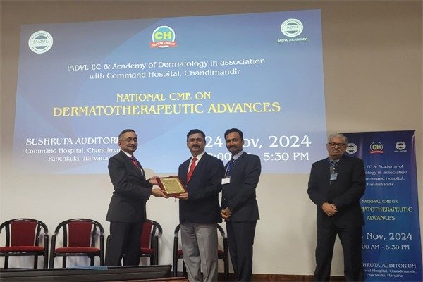 ਚੰਡੀਗੜ੍ਹ ਕਮਾਂਡ ਹਸਪਤਾਲ ਚੰਡੀਮੰਦਰ ਵਿਖੇ ਅੱਜ ਨੈਸ਼ਨਲ ਡਰਮਾਟੋਲੋਜੀ ਕੰਟੀਨਿਊਇੰਗ ਮੈਡੀਕਲ ਐਜੂਕੇਸ਼ਨ (ਸੀਐਮਈ) ਪ੍ਰੋਗਰਾਮ ਦਾ ਆਯੋਜਨ ਕੀਤਾ ਗਿਆ, ਜੋ “ਡਰਮਾਟੋਥੈਰੇਪੂਟਿਕ ਐਡਵਾਂਸਸ” ਦੇ ਥੀਮ ‘ਤੇ ਅਧਾਰਤ ਸੀ।