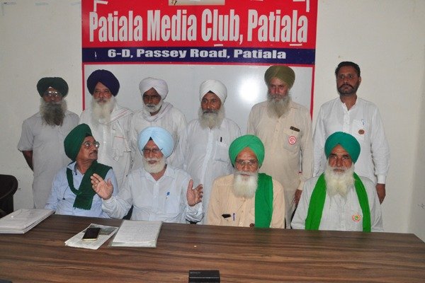 ਕੈਪਸ਼ਨ: ਪਟਿਆਲਾ ਮੀਡੀਆ ਕਲੱਬ ਵਿਚ ਪ੍ਰੈਸ ਕਾਨਫਰੰਸ ਨੂੰ ਸੰਬੋਧਨ ਕਰਦੇ ਹੋਏ ਕਿਸਾਨ ਆਗੂ ਐਡਵੋਕੇਟ ਪ੍ਰੇਮ ਸਿੰਘ ਭੰਗੂ, ਗੁਰਮੀਤ ਸਿੰਘ ਦਿੱਤੂਪੁਰ ਤੇ ਹੋਰ ਆਗੂ।