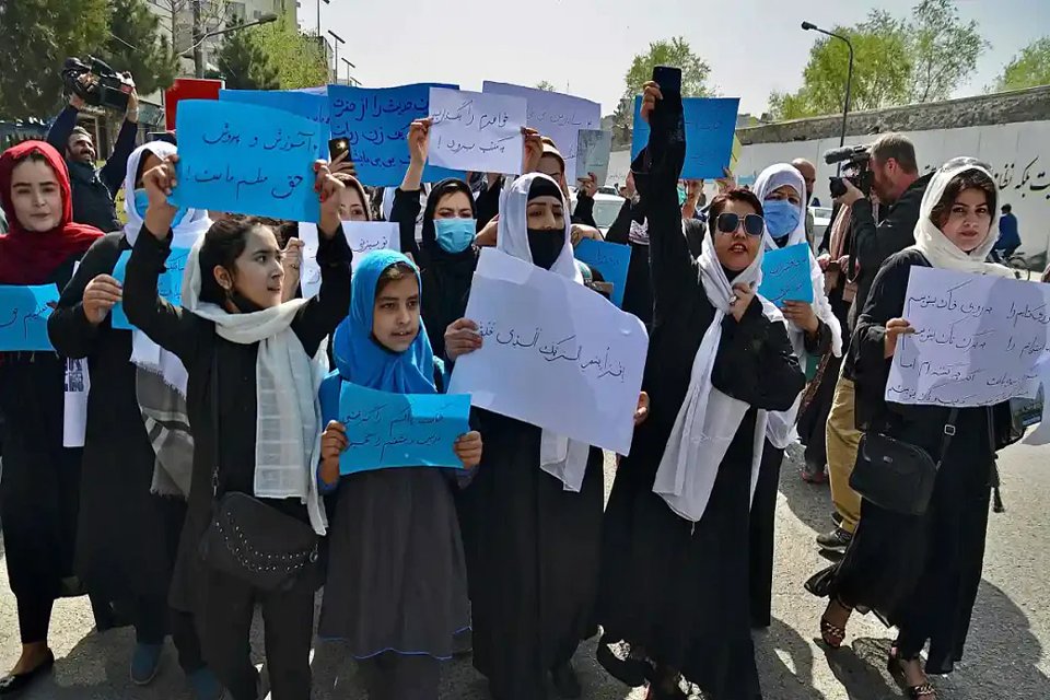 ਕਾਬੁਲ – ਅਫ਼ਗਾਨਿਸਤਾਨ ‘ਚ ਕੁੜੀਆਂ ਲਈ ਸੱਤਵੀਂ ਤੋਂ 12ਵੀਂ ਤੱਕ ਦੀਆਂ ਕਲਾਸਾਂ ਬੰਦ ਕਰਨ ਸਬੰਧੀ ਤਾਲਿਬਾਨ ਸਰਕਾਰ ਦੇ ਫ਼ੈਸਲੇ ਖ਼ਿਲਾਫ਼ ਕਾਬੁਲ ‘ਚ ਮੁਜ਼ਾਹਰੇ ਹੋਏ। ਸਿੱਖਿਆ ਮੰਤਰਾਲੇ ਦੇ ਗੇਟ ‘ਤੇ ਸ਼ਨਿਚਰਵਾਰ ਨੂੰ ਹੋਏ ਮੁਜ਼ਾਹਰੇ ‘ਚ ਲੋਕਾਂ ਨੇ ‘ਸਿੱਖਿਆ ਸਾਡਾ ਪੂਰਾ ਅਧਿਕਾਰ’ ਤੇ ‘ਮਹਿਲਾਵਾਂ ਤੇ ‘ਲਾਪਰਵਾਹੀ ਨਾਲ ਅਸੀਂ ਪਰੇਸ਼ਾਨ ਹਨ’, ‘ਕੌਮਾਂਤਰੀ ਭਾਈਚਾਰੇ ਸ਼ਰਮ ਕਰੇ’ ਤੇ ‘ਔਰਤਾਂ ਤੇ ਮਰਦਾਂ ਲਈ ਸਿੱਖਿਆ ਜ਼ਰੂਰੀ’ ਆਦਿ ਨਾਅਰੇ ਲਗਾਏ। ਮੁਜ਼ਾਹਰੇ ‘ਚ ਬੱਚਿਆਂ ਦੇ ਪਰਿਵਾਰਾਂ, ਮਹਿਲਾ ਕਾਰਕੁੰਨ, ਵਿਦਿਆਰਥੀ ਤੇ ਕੁਝ ਨੌਜਵਾਨ ਸ਼ਾਮਿਲ ਸਨ।