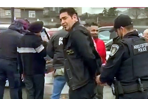 ਕੇ ਐਸ ਮੱਖਣ ਦੀ ਇਸ ਗ੍ਰਿਫ਼ਤਾਰੀ ਦੀ ਵੀਡੀਓ ਸੋਸ਼ਲ ਮੀਡੀਆ ‘ਤੇ ਕਾਫ਼ੀ ਵਾਇਰਲ ਹੋ ਰਹੀ ਐ। ਤਸਵੀਰਾਂ ਵਿਚ ਤੁਸੀਂ ਦੇਖ ਸਕਦੇ ਹੋ ਕਿ ਕੈਨੇਡਾ ਪੁਲਿਸ ਵੱਲੋਂ ਕੇ ਐਸ ਮੱਖਣ ਨੂੰ ਹਥਕੜੀਆਂ ਲਗਾਈਆਂ ਜਾ ਰਹੀਆਂ ਅਤੇ ਉਥੇ ਲੋਕਾਂ ਦਾ ਵੱਡਾ ਇਕੱਠ ਹੋ ਗਿਆ। ਜਾਣਕਾਰੀ ਅਨੁਸਾਰ ਇਹ ਗ੍ਰਿਫ਼ਤਾਰੀ ਸਰੀ ਪੁਲਿਸ ਵੱਲੋਂ ਕੀਤੀ ਗਈ ਅਤੇ ਕੇ ਐਸ ਮੱਖਣ ‘ਤੇ ਨਾਜਾਇਜ਼ ਅਸਲਾ ਰੱਖਣ ਦੇ ਇਲਜ਼ਾਮ ਲਗਾਏ ਗਏ ਨੇ।