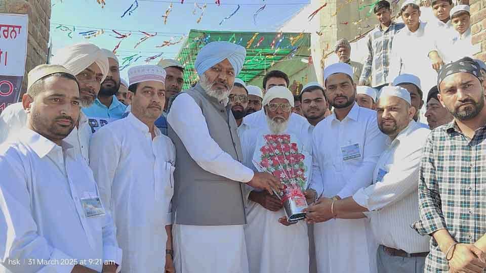 ਦਿੜ੍ਹਬਾ/ਸੰਗਰੂਰ, (ਦਲਜੀਤ ਕੌਰ) – ਪੰਜਾਬ ਦੇ ਕੈਬਨਿਟ ਮੰਤਰੀ ਹਰਪਾਲ ਸਿੰਘ ਚੀਮਾ ਨੇ ਅੱਜ ਦਿੜ੍ਹਬਾ ਵਿਖੇ ਸਥਿਤ ਜਾਮਾ ਮਸਜਿਦ ਵਿੱਚ ਈਦ-ਉਲ-ਫਿਤਰ ਦੇ ਪਵਿੱਤਰ ਦਿਹਾੜੇ ਮੌਕੇ ਵਿਸ਼ੇਸ਼ ਤੌਰ ‘ਤੇ ਸ਼ਿਰਕਤ ਕਰਦਿਆਂ ਮੁਸਲਿਮ ਭਾਈਚਾਰੇ ਨੂੰ ਨਿੱਘੀ ਮੁਬਾਰਕਬਾਦ ਭੇਟ ਕੀਤੀ। ਉਹਨਾਂ ਕਿਹਾ ਕਿ ਉਹ ਕਾਮਨਾ ਕਰਦੇ ਹਨ ਕਿ ਮੁਸਲਿਮ ਭਾਈਚਾਰਾ ਹੋਰ ਵੀ ਤਰੱਕੀ ਅਤੇ ਖੁਸ਼ਹਾਲੀ ਹਾਸਿਲ ਕਰੇ। ਇਸ ਮੌਕੇ ਕੈਬਨਿਟ ਮੰਤਰੀ ਹਰਪਾਲ ਸਿੰਘ ਚੀਮਾ ਨੇ ਕਿਹਾ ਕਿ ਮੁਸਲਿਮ ਭਾਈਚਾਰੇ ਨੂੰ ਦਰਪੇਸ਼ ਮੁਸ਼ਕਲਾਂ ਦੇ ਸਥਾਈ ਹੱਲ ਲਈ ਮੁੱਖ ਮੰਤਰੀ ਭਗਵੰਤ ਸਿੰਘ ਮਾਨ ਦੀ ਅਗਵਾਈ ਹੇਠਲੀ ਪੰਜਾਬ ਸਰਕਾਰ ਪੂਰੀ ਤਰ੍ਹਾਂ ਵਚਨਬੱਧ ਹੈ।