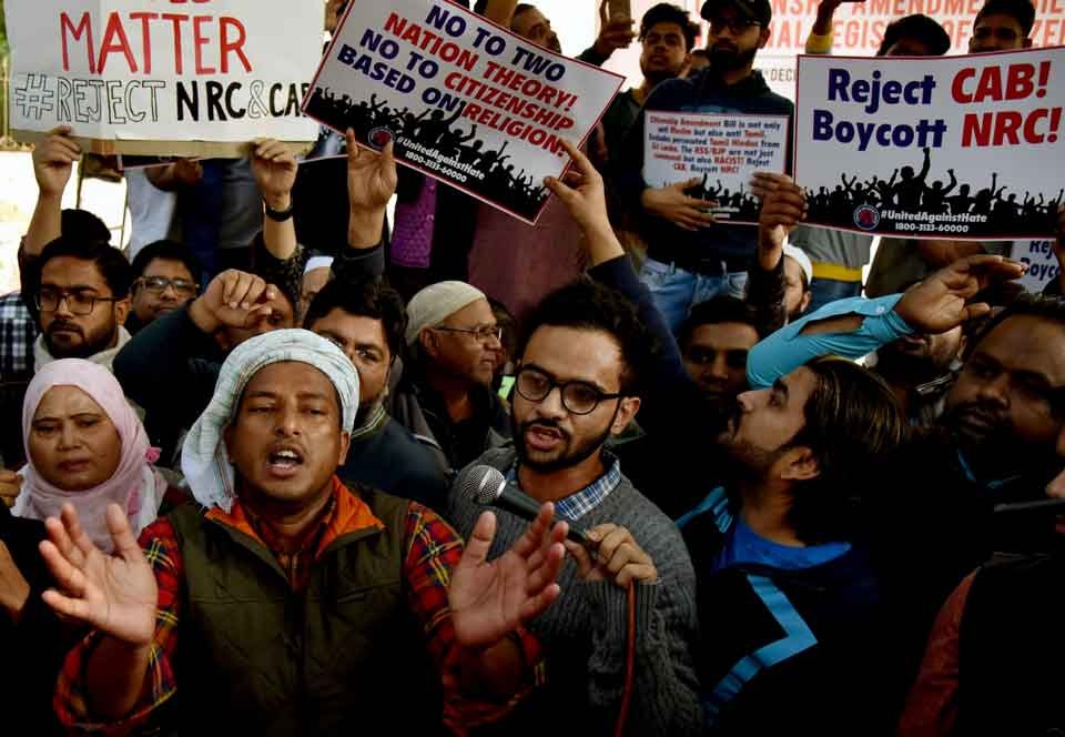 ਜੇਐਨਯੂ ਦੇ ਸਾਬਕਾ ਵਿਦਿਆਰਥੀ ਉਮਰ ਖਾਲਿਦ ਨੇ ਨਵੀਂ ਦਿੱਲੀ ਵਿੱਚ ਐਨਆਰਸੀ (ਨੈਸ਼ਨਲ ਰਜਿਸਟਰ ਆਫ਼ ਸਿਟੀਜ਼ਨਸ਼ਿਪ) ਬਿੱਲ ਅਤੇ ਨਾਗਰਿਕਤਾ ਸੋਧ ਬਿੱਲ (ਸੀਏਬੀ) ਦੇ ਵਿਰੋਧ ਵਿੱਚ ਪ੍ਰਦਰਸ਼ਨ ਦੌਰਾਨ ਜੇਐਨਯੂ ਦੇ ਵਿਦਿਆਰਥੀਆਂ ਨਾਲ। (ਫੋਟੋ: ਏ ਐਨ ਆਈ)