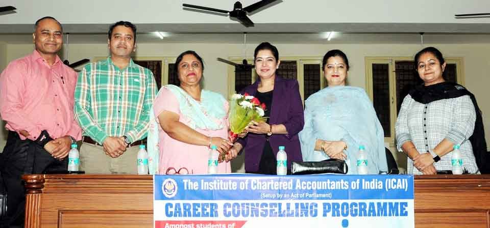 ਅੰਮ੍ਰਿਤਸਰ – ਖ਼ਾਲਸਾ ਕਾਲਜ ਦੇ ਕਾਮਰਸ ਵਿਭਾਗ ਵੱਲੋਂ ਐੱਨ. ਆਈ. ਆਰ. ਸੀ. ਦੀ ਆਈ. ਸੀ. ਏ. ਆਈ. ਅੰਮ੍ਰਿਤਸਰ ਸ਼ਾਖਾ ਦੇ ਸਹਿਯੋਗ ਨਾਲ ਕੈਰੀਅਰ ਕਾਊਂਸਲਿੰਗ ਪ੍ਰੋਗਰਾਮ ਕਰਵਾਇਆ ਗਿਆ। ਕਾਲਜ ਪ੍ਰਿੰਸੀਪਲ ਡਾ. ਮਹਿਲ ਸਿੰਘ ਦੇ ਦਿਸ਼ਾ-ਨਿਰਦੇਸ਼ਾਂ ’ਤੇ ਕਰਵਾਏ ਗਏ ਉਕਤ ਪ੍ਰੋਗਰਾਮ ਮੌਕੇ ਚਾਰਟਰਡ ਅਕਾਊਂਟੈਂਟ ਸ਼੍ਰੀਮਤੀ ਤ੍ਰਿਵੇਣੀ ਸਹਿਗਲ ਨੇ ਮੁੱਖ ਬੁਲਾਰੇ ਵਜੋਂ ਸ਼ਿਰਕਤ ਕਰਦਿਆਂ ਵਿਦਿਆਰਥੀਆਂ ਨੂੰ ਚਾਰਟਰਡ ਅਕਾਊਂਟੈਂਟ ਵਜੋਂ ਕਾਮਰਸ ਦੇ ਵਿਦਿਆਰਥੀਆਂ ਲਈ ਉਪਲਬਧ ਕਰੀਅਰ ਦੇ ਭਰਪੂਰ ਮੌਕਿਆਂ ਬਾਰੇ ਸੰਬੋਧਨ ਕੀਤਾ।