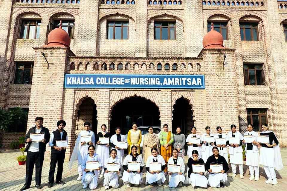 ਅੰਮ੍ਰਿਤਸਰ – ਖ਼ਾਲਸਾ ਕਾਲਜ ਆਫ਼ ਨਰਸਿੰਗ ਵਿਖੇ ਵਿਦਿਆਰਥੀਆਂ ਦੀ ਹੌਂਸਲਾ ਅਫ਼ਜਾਈ ਸਬੰਧੀ ਸਮਾਰੋਹ ਕਰਵਾਇਆ ਗਿਆ। ਕਾਲਜ ਪ੍ਰਿੰਸੀਪਲ ਡਾ. ਅਮਨਪ੍ਰੀਤ ਕੌਰ ਦੇ ਸਹਿਯੋਗ ਨਾਲ ਕਰਵਾਏ ਗਏ ਉਕਤ ਸਮਾਰੋਹ ਮੌਕੇ ਪੜ੍ਹਾਈ ਦੇ ਨਾਲ-ਨਾਲ ਹੋਰਨਾਂ ਅਲੱਗ ਗਤੀਵਿਧੀਆਂ ’ਚ ਆਪਣੇ ਮੁਕਾਮ ਨੂੰ ਹਾਸਲ ਕਰਨ ਲਈ ਉਤਸ਼ਾਹਿਤ ਕੀਤਾ ਗਿਆ।