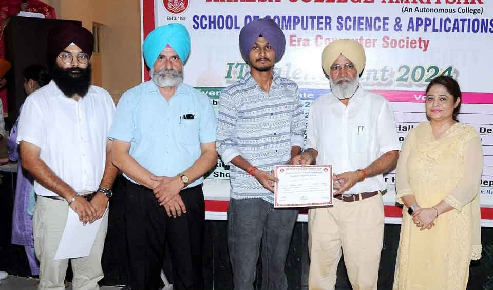 ਅੰਮ੍ਰਿਤਸਰ – ਖ਼ਾਲਸਾ ਕਾਲਜ ਦੇ ਸਕੂਲ ਆਫ ਕੰਪਿਊਟਰ ਸਾਇੰਸ ਐਂਡ ਐਪਲੀਕੇਸ਼ਨਜ਼ ਵੱਲੋਂ 5 ਰੋਜ਼ਾ ਆਈ. ਟੀ. ਟੈਲੇਂਟ ਹੰਟ-2024 ਸਮਾਗਮ ਕਰਵਾਇਆ ਗਿਆ। ਕਾਲਜ ਪ੍ਰਿੰਸੀਪਲ ਡਾ. ਮਹਿਲ ਸਿੰਘ ਦੇ ਨਿਰਦੇਸ਼ਾਂ ’ਤੇ ਕਰਵਾਏ ਉਕਤ ਪ੍ਰੋਗਰਾਮ ’ਚ ਕੋਡ, ਡੀਬੈਗਿੰਗ, ਕੋਜ਼ੋਟਿਕਾ, ਆਨਲਾਈਨ ਗੇਮਾਂ, ਲੋਗੋ ਮੇਕਿੰਗ, ਡਿਬੇਟ, ਵੈਬ ਨੈਕਸਸ ਅਤੇ ਐਡ ਮੈਡ ਸ਼ੋ ਆਦਿ ਵੱਖ-ਵੱਖ ਸਮਾਰੋਹ ਸ਼ਾਮਿਲ ਕੀਤੇ ਗਏ।
