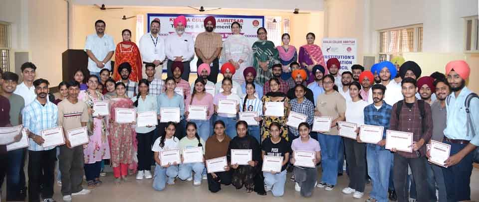 ਅੰਮ੍ਰਿਤਸਰ – ਖਾਲਸਾ ਕਾਲਜ ਦੇ ਟ੍ਰੇਨਿੰਗ ਅਤੇ ਪਲੇਸਮੈਂਟ ਸੈਲ ਵੱਲੋਂ ਆਖਰੀ ਸਾਲ ਦੇ ਵਿਦਿਆਰਥੀਆਂ ਲਈ 5 ਰੋਜਾ ਪ੍ਰੀ-ਪਲੇਸਮੈਂਟ ਸਿਖਲਾਈ ਵਰਕਸ਼ਾਪ ਦਾ ਆਯੋਜਨ ਕੀਤਾ ਗਿਆ। ਕਾਲਜ ਪ੍ਰਿੰਸੀਪਲ ਡਾ. ਮਹਿਲ ਸਿੰਘ ਦੇ ਸਹਿਯੋਗ ਨਾਲ ਕਰਵਾਈ ਗਈ ਉਕਤ ਪਲੇਸਮੈਂਟ ਮੌਕੇ ਸ੍ਰੀਮਤੀ ਵਿੰਮੀ ਸੇਠੀ ਨੇ ਮੁੱਖ ਬੁਲਾਰੇ ਵਜੋਂ ਸ਼ਿਰਕਤ ਕੀਤੀ।