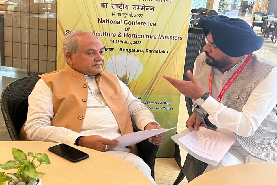 ਸ. ਧਾਲੀਵਾਲ ਬੈਂਗਲੁਰੂ ਵਿਖੇ ਸੂਬਿਆਂ ਦੇ ਖੇਤੀਬਾੜੀ ਤੇ ਬਾਗਬਾਨੀ ਮੰਤਰੀਆਂ ਦੀ ਕੌਮੀ ਕਾਨਫਰੰਸ ਦੌਰਾਨ ਸ਼ਿਰਕਤ ਪੁੱਜੇ ਹੋਏ ਹਨ ਜਿੱਥੇ ਉਨਾਂ ਨੇ ਕੇਂਦਰੀ ਖੇਤੀਬਾੜੀ ਮੰਤਰੀ ਨਾਲ ਮੁਲਾਕਾਤ ਕਰ ਕੇ ਸੂਬੇ ਦੇ ਕਿਸਾਨਾਂ ਲਈ ਆਰਥਿਕ ਰਾਹਤ ਦੀ ਮੰਗ ਕੀਤੀ ਹੈ।