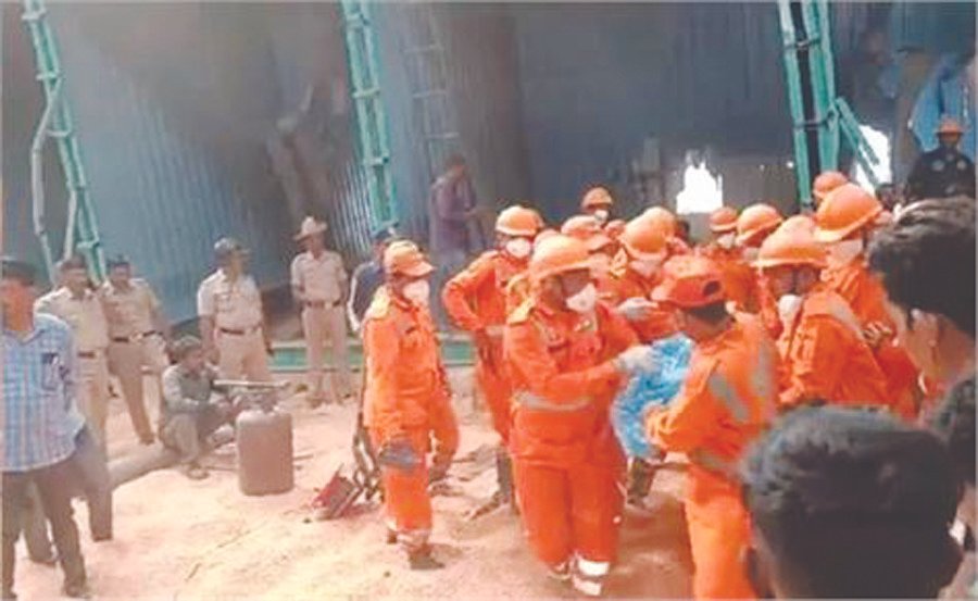 ਵਿਜੇਪੁਰਾ – ਕਰਨਾਟਕ ਦੇ ਵਿਜੇਪੁਰਾ ਦੇ ਅਲੀਆਬਾਦ ਉਦਯੋਗਿਕ ਖੇਤਰ ’ਚ ਇਕ ਪ੍ਰਾਈਵੇਟ ਫੂਡ ਪ੍ਰੋਸੈਸਿੰਗ ਯੂਨਿਟ ਦੇ ਗੋਦਾਮ ’ਚ ਇਕ ਵੱਡੀ ਮਸ਼ੀਨ ਨੁਕਸਾਨੀ ਗਈ। ਜਿਸ ਤੋਂ ਬਾਅਦ 100 ਟਨ ਮੱਕੀ ਦੇ ਢੇਰ ਹੇਠ ਦੱਬ ਜਾਣ ਕਾਰਨ ਬਿਹਾਰ ਦੇ 7 ਮਜ਼ਦੂਰਾਂ ਦੀ ਮੌਤ ਹੋ ਗਈ। ਪੁਲਿਸ ਨੇ ਮੰਗਲਵਾਰ ਨੂੰ ਇਹ ਜਾਣਕਾਰੀ ਦਿੱਤੀ। ਵਿਜੇਪੁਰਾ ਦੇ ਪੁਲਿਸ ਸੁਪਰਡੈਂਟ ਸੋਨਾਵਨੇ ਰਿਸ਼ੀਕੇਸ਼ ਭਗਵਾਨ ਨੇ ਦੱਸਿਆ ਕਿ ਇਸ ਘਟਨਾ ’ਚ 3 ਲੋਕ ਜ਼ਖ਼ਮੀ ਹੋਏ ਹਨ। ਜੋ ਲੋਕ ਦੱਬੇ ਗਏ ਸਨ, ਉਨ੍ਹਾਂ ਵਿਚੋਂ ਇਕ ਨੂੰ ਬਚਾ ਲਿਆ ਗਿਆ। ਜਦਕਿ 7 ਲੋਕਾਂ ਦੀ ਮੌਤ ਹੋ ਗਈ, ਉਹ ਸਾਰੇ ਮਜ਼ਦੂਰ ਸਨ।