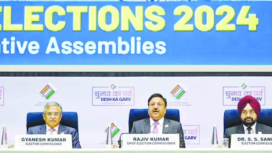 ਨਵੀਂ ਦਿੱਲੀ – ਭਾਰਤੀ ਚੋਣ ਕਮਿਸ਼ਨ ਅੱਜ ਹਰਿਆਣਾ ਤੇ ਜੰਮੂ ਕਸ਼ਮੀਰ ਵਿਧਾਨ ਸਭਾਵਾਂ ਲਈ ਚੋਣਾਂ ਦਾ ਐਲਾਨ ਕਰ ਦਿੱਤਾ ਹੈ। ਮੁੱਖ ਚੋਣ ਕਮਿਸ਼ਨਰ ਰਾਜੀਵ ਕੁਮਾਰ ਨੇ ਅੱਜ ਪੱਤਰਕਾਰਾਂ ਨੂੰ ਦੱਸਿਆ ਕਿ ਜੰਮੂ ਕਸ਼ਮੀਰ ਵਿੱਚ ਤਿੰਨ ਪੜਾਵਾਂ 18, 25 ਸਤੰਬਰ ਤੇ ਪਹਿਲੀ ਅਕਤੂਬਰ ਨੂੰ ਵੋਟਾਂ ਪੈਣਗੀਆਂ। ਹਰਿਆਣਾ ਵਿਧਾਨ ਸਭਾ ਲਈ ਵੋਟਾਂ ਪਹਿਲੀ ਅਕਤੂਬਰ ਨੂੰ ਪੈਣਗੀਆਂ ਤੇ ਦੋਵਾਂ ਰਾਜਾਂ ਦੀਆਂ ਚੋਣਾਂ ਦੇ ਨਤੀਜੇ 4 ਅਕਤੂਬਰ ਨੂੰ ਅਲਾਨੇ ਜਾਣਗੇ। ਜੰਮੂ ਕਸ਼ਮੀਰ ਵਿੱਚ 10 ਸਾਲ ਬਾਅਦ ਵਿਧਾਨ ਸਭਾ ਚੋਣਾਂ ਹੋ ਰਹੀਆਂ ਹਨ। ਕਸ਼ਮੀਰ ਵਿੱਚ 47 ਤੇ ਜੰਮੂ ਖੇਤਰ ਵਿੱਚ 43 ਹਲਕੇ ਹਨ।ਇਸ ਤੋਂ ਪਹਿਲਾਂ ਸਾਲ 2014 ਵਿੱਚ ਵਿਧਾਨ ਸਭਾ ਚੋਣਾਂ ਹੋਈਆਂ ਸਨ। ਹਰਿਆਣਾ ਵਿਧਾਨ ਸਭਾਵਾਂ ਦਾ ਕਾਰਜਕਾਲ 3 ਨਵੰਬਰ ਨੂੰ ਖਤਮ ਹੋ ਰਿਹਾ ਹੈ। ਚੋਣ ਕਮਿਸ਼ਨ ਦੀ ਜੰਮੂ-ਕਸ਼ਮੀਰ ਵਿੱਚ 30 ਸਤੰਬਰ ਤੋਂ ਪਹਿਲਾਂ ਵਿਧਾਨ ਸਭਾ ਚੋਣਾਂ ਕਰਵਾਉਣ ਦੀ ਯੋਜਨਾ ਸੀ। ਇਹ ਸਮਾਂ ਸੀਮਾ ਸੁਪਰੀਮ ਕੋਰਟ ਨੇ ਤੈਅ ਕੀਤੀ ਹੈ।ਮੁੱਖ ਚੋਣ ਕਮਿਸ਼ਨਰ ਰਾਜੀਵ ਕੁਮਾਰ ਨੇ ਦੱਸਿਆ ਕਿ ਇਸ ਕੇਂਦਰ ਸ਼ਾਸਤ ਪ੍ਰਦੇਸ਼ ਵਿੱਚ 90 ਵਿਧਾਨ ਸਭਾ ਹਲਕਿਆਂ ਵਿੱਚ 87.09 ਲੱਖ ਵੋਟਰ ਹਨ ਤੇ ਇਨ੍ਹਾਂ ਵਿੱਚ 42.6 ਲੱਖ ਮਹਿਲਾ ਵੋਟਰ ਹਨ। ਹਰਿਆਣਾ ’ਚ ਵੀ 90 ਵਿਧਾਨ ਸਭਾ ਹਲਕੇ ਹਨ ਤੇ ਇਥੇ 2 ਕਰੋੜ ਤੋਂ ਵੱਧ ਵੋਟਰ ਹਨ।ਮੁਖ ਚੋਣ ਕਮਿਸ਼ਨਰ ਰਾਜੀਵ ਕੁਮਾਰ ਨੇ ਕਿਹਾ ਹੈ ਕਿ ਲੋਕ ਸਭਾ ਚੋਣਾਂ ਸ਼ਾਂਤੀਪੂਰਵਕ ਨੇਪਰੇ ਚੜ੍ਹ ਗਈਆਂ। ਪੂਰੇ ਦੇਸ਼ ਨੇ ਚੋਣਾਂ ਦਾ ਤਿਉਹਾਰ ਮਨਾਇਆ। ਲੰਬੀਆਂ ਕਤਾਰਾਂ, ਬਜ਼ੁਰਗ ਅਤੇ ਨੌਜਵਾਨ ਵੋਟ ਪਾਉਣ ਲਈ ਚਲੇ ਗਏ। ਦੇਸ਼ ਨੇ ਲੋਕਤੰਤਰ ਦੀ ਜਿਉਂਦੀ ਜਾਗਦੀ ਮਿਸਾਲ ਦੇਖੀ। ਭਾਰਤ ਨੇ ਦੁਨੀਆ ਨੂੰ ਜੋ ਤਸਵੀਰ ਦਿਖਾਈ ਉਹ ਹੈਰਾਨ ਕਰਨ ਵਾਲੀ ਸੀ। ਜੋ ਚਮਕ ਅਸੀਂ ਵੇਖੀ ਹੈ ਉਹ ਲੰਬੇ ਸਮੇਂ ਲਈ ਦਿਖਾਈ ਦੇਵੇਗੀ. ਜਦੋਂ ਵੀ ਦੁਨੀਆਂ ਵਿੱਚ ਕਿਤੇ ਵੀ ਚੋਣਾਂ ਹੋਣਗੀਆਂ, ਤੁਹਾਨੂੰ ਆਪਣੇ ਦੇਸ਼ ਦੀ ਯਾਦ ਆਵੇਗੀ ਅਤੇ ਸਾਡੀ ਤਾਕਤ ਦੀ ਯਾਦ ਦਿਵਾਈ ਜਾਵੇਗੀ।