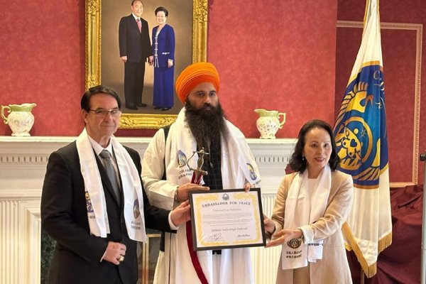 ਵਾਸ਼ਿੰਗਟਨ – ਜਥੇਦਾਰ ਬਲਜੀਤ ਸਿੰਘ ਦਾਦੂਵਾਲ ਦਾ ਯੂਨੀਵਰਸਲ ਪੀਸ ਫੈੱਡਰੇਸ਼ਨ ਯੂਐੱਸਏ ਵੱਲੋਂ ‘ਸ਼ਾਂਤੀ ਦੇ ਰਾਜਦੂਤ’ ਦੇ ਵੱਕਾਰੀ ਖਿਤਾਬ ਨਾਲ ਸਨਮਾਨ ਕੀਤਾ ਗਿਆ ਹੈ। ਵਾਸ਼ਿੰਗਟਨ ਹਾਲ ‘ਚ ਆਯੋਜਿਤ ਸਮਾਗਮ ‘ਚ ਜਥੇਦਾਰ ਦਾਦੂਵਾਲ ਵੱਲੋਂ ਸ਼ਾਂਤੀ ਅਤੇ ਭਾਈਚਾਰਕ ਲੀਡਰਸ਼ਿਪ ਨੂੰ ਉਤਸ਼ਾਹਿਤ ਕਰਨ ਵਿੱਚ ਪਾਏ ਗਏ ਅਨਮੋਲ ਯੋਗਦਾਨ ਨੂੰ ਮਾਨਤਾ ਦਿੱਤੀ ਗਈ ਹੈ। ਜਥੇਦਾਰ ਦਾਦੂਵਾਲ, ਜੋ ਕਿ ਹਰਿਆਣਾ ਸਿੱਖ ਗੁਰਦੁਆਰਾ ਪ੍ਰਬੰਧਕ ਕਮੇਟੀ ਦੇ ਪ੍ਰਧਾਨ ਵਜੋਂ ਵੀ ਸੇਵਾ ਕਰ ਚੁੱਕੇ ਹਨ ਤੇ ਹੁਣ ਧਰਮ ਪ੍ਰਚਾਰ ਦੇ ਚੇਅਰਮੈਨ ਹਨ, ਉਨ੍ਹਾਂ ਦੀ ਸਮੂੰਹ ਭਾਈਚਾਰਿਆਂ ‘ਚ ਏਕਤਾ ਸਤਿਕਾਰ ਤੇ ਸਦਭਾਵਨਾ ਨੂੰ ਉਤਸ਼ਾਹਿਤ ਕਰਨ ਲਈ ਉਨ੍ਹਾਂ ਦੀ ਅਟੁੱਟ ਵਚਨਬੱਧਤਾ ਲਈ ਪ੍ਰਸ਼ੰਸਾ ਕੀਤੀ ਗਈ।ਸਨਮਾਨ ਸਮਾਗਮ ‘ਚ ਜਥੇਦਾਰ ਦਾਦੂਵਾਲ ਦੀ ਧਰਮ ਸੁਪਤਨੀ ਬੀਬੀ ਸੁਖਮੀਤ ਕੌਰ ਅਤੇ ਸਪੁੱਤਰ ਭਾਈ ਕੁਰਬਾਨ ਸਿੰਘ ਭਾਈ ਕਿਆਮਤ ਸਿੰਘ, ਜਥੇਦਾਰ ਚਰਨ ਸਿੰਘ ਪ੍ਰੇਮਪੁਰਾ ਪ੍ਰਧਾਨ ਐੱਨਆਰਆਈ ਵਿੰਗ ਹਰਿਆਣਾ ਸਿੱਖ ਗੁਰਦੁਆਰਾ ਪ੍ਰਬੰਧਕ ਕਮੇਟੀ ਅਮਰੀਕਾ,ਇੰਟਰਨੈਸ਼ਨਲ ਕੌਂਸਲ ਦੇ ਸੀਈਓ ਸ਼ੁਬੇਗ ਸਿੰਘ ਮੁਲਤਾਨੀ, ਸ.ਹਰਜੀਤ ਸਿੰਘ ਹੁੰਦਲ ਸਬਰੰਗ ਸਮੇਤ ਕਈ ਪ੍ਰਮੁੱਖ ਸ਼ਖ਼ਸੀਅਤਾਂ ਵੀ ਮੌਜੂਦ ਸਨ। ਯੂਨੀਵਰਸਲ ਪੀਸ ਫੈੱਡਰੇਸ਼ਨ ਦੇ ਪ੍ਰਧਾਨ ਮਿ.ਮਿਸ਼ੇਲ ਜੈਨਕਿੰਸ,ਵਾਈਸ ਪ੍ਰੈਜ਼ੀਡੈਂਟ ਟੋਮੀਕੋ ਦੁਗਾਨ ਅਤੇ ਇੰਟਰਨੈਸ਼ਨਲ ਫੋਰਮ ਯੂਐੱਸਏ ਦੇ ਕੋ-ਚੇਅਰ ਡਾ. ਸੁਰਿੰਦਰ ਸਿੰਘ ਗਿੱਲ ਨੇ ਜਥੇਦਾਰ ਦਾਦੂਵਾਲ ਦੀ ਮਾਨਵਤਾਵਾਦੀ ਸੇਵਾ ਅਤੇ ਸ਼ਾਂਤੀ-ਨਿਰਮਾਣ ਦੇ ਯਤਨਾਂ ਦੀ ਸ਼ਲਾਘਾ ਕੀਤੀ। ਡਾ. ਗਿੱਲ ਨੇ ਵਿਸ਼ੇਸ਼ ਤੌਰ ‘ਤੇ ਵੱਖ-ਵੱਖ ਧਰਮਾਂ ਅਤੇ ਪਿਛੋਕੜਾਂ ਦੇ ਲੋਕਾਂ ਨੂੰ ਜੋੜਨ ਲਈ ਕੰਮ ਕਰਦੇ ਹੋਏ ਇੱਕ ਪੁਲ-ਨਿਰਮਾਤਾ ਵਜੋਂ ਜਥੇਦਾਰ ਦਾਦੂਵਾਲ ਦੀ ਭੂਮਿਕਾ ਨੂੰ ਉਜਾਗਰ ਕੀਤਾ, ਜੋ ਕਿ ਜਥੇਦਾਰ ਦਾਦੂਵਾਲ ਇੱਕ ਨਿਸ਼ਕਾਮ ਸੇਵਕ ਵਜੋਂ ਨਿਭਾ ਰਹੇ ਹਨ। ਸਨਮਾਨ ਸਮਾਗਮ ਦੌਰਾਨ ਜਥੇਦਾਰ ਦਾਦੂਵਾਲ ਨੇ ਵਿਸ਼ਵ ਸ਼ਾਂਤੀ ਅਤੇ ਸਤਿਕਾਰ ਲਈ ਪ੍ਰਮਾਤਮਾ ਅੱਗੇ ਦਿਲੋਂ ਅਰਦਾਸ ਕੀਤੀ। ਉਨ੍ਹਾਂ ਦਾ ਸੰਦੇਸ਼ ਸਰੋਤਿਆਂ ਵਿੱਚ ਡੂੰਘਾਈ ਨਾਲ ਗੂੰਜਿਆ। ਵਿਸ਼ਵ ਪੱਧਰ ‘ਤੇ ਸਦਭਾਵਨਾ ਨੂੰ ਉਤਸ਼ਾਹਤ ਕਰਨ ਲਈ ਜਥੇਦਾਰ ਦਾਦੂਵਾਲ ਦੀ ਵਚਨਬੱਧਤਾ ਨੂੰ ਹੋਰ ਮਜ਼ਬੂਤ ਕਰਦਾ ਹੈ। ਯੂਨੀਵਰਸਲ ਪੀਸ ਫੈੱਡਰੇਸ਼ਨ ਨੇ ਇੱਕ ਵਿਸ਼ੇਸ਼ ਚਾਹ ਸਮਾਰੋਹ ਜਥੇਦਾਰ ਬਲਜੀਤ ਸਿੰਘ ਦਾਦੂਵਾਲ ਦੇ ਸਨਮਾਨ ਵਜੋਂ ਕੀਤਾ।