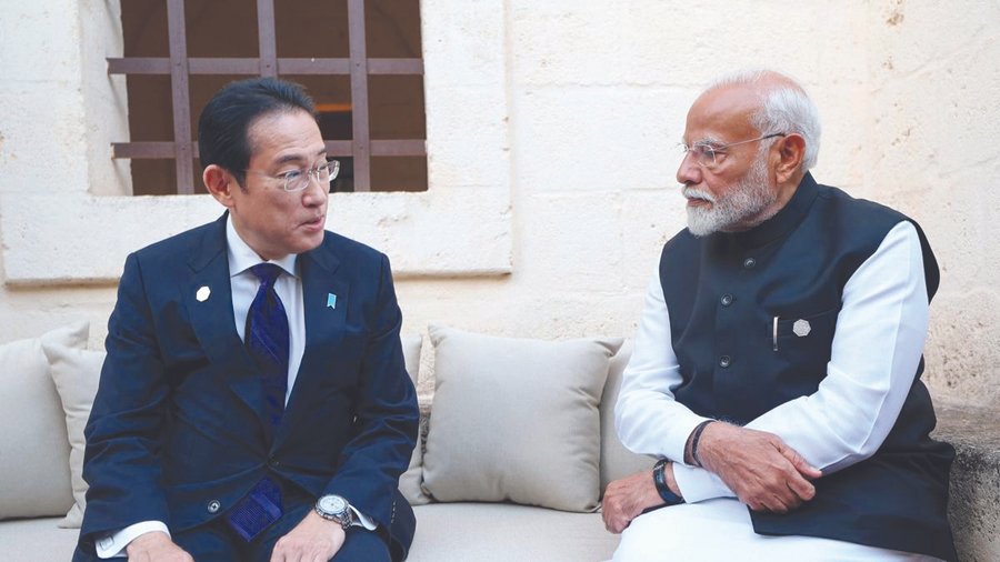 ਰੋਮ – ਪ੍ਰਧਾਨ ਮੰਤਰੀ ਨਰਿੰਦਰ ਮੋਦੀ ਨੇ ਜਾਪਾਨ ਦੇ ਪ੍ਰਧਾਨ ਮੰਤਰੀ ਫੂਮਿਓ ਕਿਸ਼ਿਦਾ ਨਾਲ ਮੁਲਾਕਾਤ ਕੀਤੀ ਅਤੇ ਕਿਹਾ ਕਿ ਭਾਰਤ ਅਤੇ ਜਾਪਾਨ ਦਰਮਿਆਨ ਮਜ਼ਬੂਤ ਸਬੰਧ ਸ਼ਾਂਤੀਪੂਰਨ, ਸੁਰੱਖਿਅਤ ਅਤੇ ਖੁਸ਼ਹਾਲ ਇੰਡੋ-ਪੈਸੀਫਿਕ ਖੇਤਰ ਲਈ ਬਹੁਤ ਜ਼ਰੂਰੀ ਹਨ। ਮੋਦੀ ਅਤੇ ਕਿਸ਼ੀਦਾ ਨੇ ਵੱਖ-ਵੱਖ ਖੇਤਰਾਂ ਵਿੱਚ ਦੋਵਾਂ ਦੇਸ਼ਾਂ ਦੇ ਦੁਵੱਲੇ ਸਬੰਧਾਂ ਨੂੰ ਅੱਗੇ ਵਧਾਉਣ ਲਈ ਵੀ ਸਹਿਮਤੀ ਪ੍ਰਗਟਾਈ। ਪ੍ਰਧਾਨ ਮੰਤਰੀ ਮੋਦੀ ਤਿੰਨ ਦਿਨਾਂ ਜੀ-7 ਸਿਖਰ ਸੰਮੇਲਨ ਦੇ ਦੂਜੇ ਦਿਨ ’ਆਊਟਰੀਚ ਸੈਸ਼ਨ’ ਨੂੰ ਸੰਬੋਧਨ ਕਰਨ ਲਈ ਦੱਖਣੀ ਇਟਲੀ ਦੇ ਅਪੁਲੀਆ ਦੇ ਇੱਕ ਦਿਨ ਦੇ ਦੌਰੇ ’ਤੇ ਸਨ। ਉਨ੍ਹਾਂ ਨੇ ’ਆਰਟੀਫੀਸ਼ੀਅਲ ਇੰਟੈਲੀਜੈਂਸ, ਐਨਰਜੀ, ਅਫਰੀਕਾ ਅਤੇ ਮੈਡੀਟੇਰੀਅਨ’ ’ਤੇ ਆਪਣੇ ਸੰਬੋਧਨ ਤੋਂ ਬਾਅਦ ਕਿਸ਼ਿਦਾ ਨਾਲ ਮੁਲਾਕਾਤ ਕੀਤੀ।ਕਿਸ਼ਿਦਾ ਨਾਲ ਗੱਲਬਾਤ ਤੋਂ ਬਾਅਦ ਪ੍ਰਧਾਨ ਮੰਤਰੀ ਨੇ ਸੋਸ਼ਲ ਮੀਡੀਆ ’ਤੇ ਕਿਹਾ, ‘ਸ਼ਾਂਤੀ, ਸੁਰੱਖਿਅਤ ਅਤੇ ਖੁਸ਼ਹਾਲ ਇੰਡੋ-ਪੈਸੀਫਿਕ ਲਈ ਭਾਰਤ ਅਤੇ ਜਾਪਾਨ ਦਰਮਿਆਨ ਮਜ਼ਬੂਤ ਸਬੰਧ ਮਹੱਤਵਪੂਰਨ ਹਨ।’ ਪ੍ਰਧਾਨ ਮੰਤਰੀ ਮੋਦੀ ਦਾ ਇਹ ਬਿਆਨ ਖੇਤਰ ਵਿੱਚ ਚੀਨ ਦੇ ਹਮਲਾਵਰ ਰਵੱਈਏ ਅਤੇ ਉਸ ਵੱਲੋਂ ਦਬਾਅ ਵਧਾਉਣ ਦੀਆਂ ਕੋਸ਼ਿਸ਼ਾਂ ਦਰਮਿਆਨ ਆਇਆ ਹੈ। ਉਨ੍ਹਾਂ ਕਿਹਾ, “ਦੇਸ਼ ਰੱਖਿਆ, ਤਕਨਾਲੋਜੀ, ਸੈਮੀਕੰਡਕਟਰ, ਸਵੱਛ ਊਰਜਾ ਅਤੇ ਡਿਜੀਟਲ ਤਕਨਾਲੋਜੀ ਦੇ ਖੇਤਰਾਂ ਵਿੱਚ ਮਿਲ ਕੇ ਕੰਮ ਕਰਨ ਲਈ ਤਿਆਰ ਹਨ।ਅਸੀਂ ਬੁਨਿਆਦੀ ਢਾਂਚੇ ਅਤੇ ਸੱਭਿਆਚਾਰਕ ਸਬੰਧਾਂ ਦੇ ਲਿਹਾਜ਼ ਨਾਲ ਸਬੰਧਾਂ ਨੂੰ ਵੀ ਅੱਗੇ ਲਿਜਾਣਾ ਚਾਹੁੰਦੇ ਹਾਂ।’’ ਦੋਹਾਂ ਨੇਤਾਵਾਂ ਵਿਚਾਲੇ ਗੱਲਬਾਤ ਦੇ ਸਬੰਧ ’ਚ ਜਾਰੀ ਇਕ ਬਿਆਨ ’ਚ ਵਿਦੇਸ਼ ਮੰਤਰਾਲੇ ਨੇ ਕਿਹਾ ਕਿ ਪ੍ਰਧਾਨ ਮੰਤਰੀ ਮੋਦੀ ਨੇ ਕਿਸ਼ਿਦਾ ਨੂੰ ਉਨ੍ਹਾਂ ਦੇ ਮੁੜ ਹੋਣ ’ਤੇ ਵਧਾਈ ਦੇਣ ਲਈ ਫੋਨ ਕੀਤਾ ਸੀ। -ਚੋਣ ਨੇ ਉਨ੍ਹਾਂ ਦਾ ਧੰਨਵਾਦ ਕੀਤਾ ਅਤੇ ਇਹ ਵੀ ਕਿਹਾ ਕਿ ਉਨ੍ਹਾਂ ਦੇ ਤੀਜੇ ਕਾਰਜਕਾਲ ’ਚ ਦੁਵੱਲੇ ਸਬੰਧ ਮਹੱਤਵਪੂਰਨ ਰਹਿਣਗੇ।