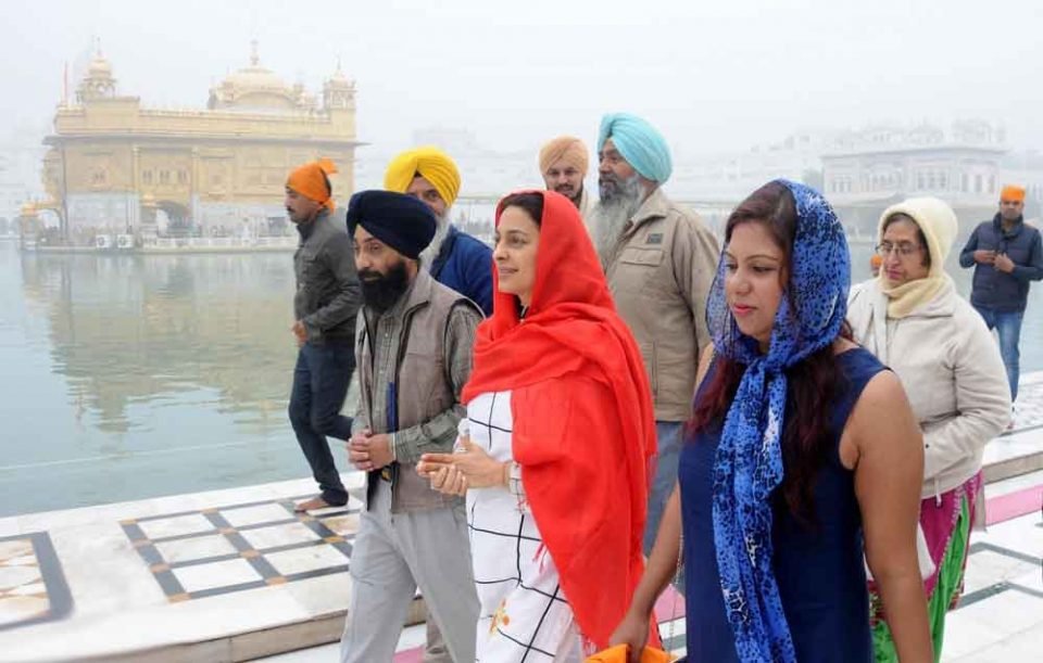 ਅੰਮ੍ਰਿਤਸਰ – ਜੂਹੀ ਚਾਵਲਾ ਸਮੇਤ ਰਿਸ਼ੀ ਕਪੂਰ, ਰਣਧੀਰ ਕਪੂਰ, ਰੋਹਿਤ ਰਾਏ, ਰਣਦੀਪ ਹੁੱਡਾ, ਦਿਵਿਆ ਦੱਤਾ, ਮਨੀਸ਼ਾ ਕੋਇਰਾਲਾ, ਦੀਪਾ ਸਹਾਏ, ਆਰਿਅਨ ਬੱਬਰ ਅਤੇ ਹੋਰ ਬਹੁਤ ਸਾਰੇ ਫਿਲਮੀ ਸਿਤਾਰੇ ਅੱਜ ਸੱਚਖੰਡ ਸ੍ਰੀ ਹਰਿਮੰਦਰ ਸਾਹਿਬ ਵਿਖੇ ਨਤਮਸਤਕ ਹੋਏ। ਫਿਲਮੀ ਸਿਤਾਰਿਆਂ ਨੇ ਇਸ ਸਮੇਂ ਇਲਾਹੀ ਬਾਣੀ ਸਰਵਣ ਕੀਤੀ ਅਤੇ ਸ੍ਰੀ ਗੁਰੂ ਰਾਮਦਾਸ ਲੰਗਰ ਹਾਲ ਵਿਚ ਵੀ ਸਮਾਂ ਬਿਤਾਇਆ। ਇਸ ਸਮੇਂ ਫਿਲਮੀ ਸਿਤਾਰਿਆਂ ਨੇ ਲੰਗਰ ਵੀ ਛੱਕਿਆ। ਜੂਹੀ ਚਾਵਲਾ ਨੇ ਸ੍ਰੀ ਹਰਿਮੰਦਰ ਸਾਹਿਬ ਮੱਥਾ ਟੇਕਣ ਅਤੇ ਸ੍ਰੀ ਗੁਰੂ ਰਾਮਦਾਸ ਜੀ ਦੇ ਲੰਗਰ ਹਾਲ ‘ਚ ਪ੍ਰਸ਼ਾਦਾ ਛਕਣ ਦਾ ਅਨੁਭਵ ਸਾਂਝਾ ਕਰਦਿਆਂ ਕਿਹਾ ਕਿ ਗੁਰਬਾਣੀ ਸਰਵਣ ਕਰਨ ਨਾਲ ਉਨ੍ਹਾਂ ਨੂੰ ਅਨਹਦ ਆਨੰਦ ਪ੍ਰਾਪਤ ਹੋਇਆ ਹੈ, ਜਦੋਂਕਿ ਲੰਗਰ ‘ਚ ਪ੍ਰਸ਼ਾਦਾ ਛਕਣ ਦੇ ਨਾਲ ਉਹ ਜ਼ਮੀਨੀ ਪੱਧਰ ‘ਤੇ ਗੁਰੂ ਦੀ ਲੰਗਰ ਪ੍ਰਥਾ ਤੋਂ ਜਾਣੂ ਹੋਈ ਹੈ। ਇਹ ਫਿਲਮੀ ਸਿਤਾਰੇ ਇਤਿਹਾਸਕ ਗੋਬਿੰਦਗੜ੍ਹ ਕਿਲ੍ਹਾ ਜੋ ਆਮ ਲੋਕਾਂ ਦੇ ਲਈ ਖੋਲ੍ਹ ਦਿੱਤਾ ਗਿਆ ਹੈ, ਦੇ ਸ਼ੁਭ ਆਰੰਭ ਸਮੇਂ ਮੁੱਖ ਮਹਿਮਾਨ ਦੇ ਤੌਰ ‘ਤੇ ਹਿੱਸਾ ਲੈਣÎ ਲਈ ਅੰਮ੍ਰਿਤਸਰ ਆਏ ਸਨ।