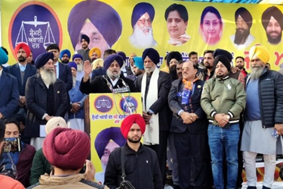 ਸਮਾਣਾ – ਹਲਕਾ ਸਮਾਣਾ ਤੋਂ ਅਕਾਲੀ ਦਲ-ਬਸਪਾ ਗਠਜੋੜ ਦੇ ਸਾਂਝੇ ਉਮੀਦਵਾਰ ਸੁਰਜੀਤ ਸਿੰਘ ਰੱਖੜਾ ਦੇ ਹੱਕ ‘ਚ ਦਾਣਾ ਮੰਡੀ ਸਮਾਣਾ ‘ਚ ਵਿਸ਼ਾਲ ਇਕੱਠ ਹੋਇਆ। ਇਸ ਮੌਕੇ ਸ਼ੋ੍ਮਣੀ ਅਕਾਲੀ ਦਲ ਦੇ ਪ੍ਰਧਾਨ ਤੇ ਸਾਬਕਾ ਉਪ-ਮੁੱਖ ਮੰਤਰੀ ਸੁਖਬੀਰ ਸਿੰਘ ਬਾਦਲ ਨੇ ਕਿਹਾ ਅਕਾਲੀ ਦਲ-ਬਸਪਾ ਗਠਜੋੜ ਦੀ ਸਰਕਾਰ ਬਣਦਿਆਂ ਹੀ ਸੂਬੇ ‘ਚੋਂ ਸ਼ਰਾਬ ਮਾਫੀਆ, ਮਾਈਨਿੰਗ ਤੇ ਅਕਾਲੀ ਵਰਕਰਾਂ ‘ਤੇ ਝੂਠੇ ਪਰਚੇ ਦਰਜ ਕਰਨ ਵਾਲਿਆਂ ਖਿਲਾਫ ਸਖਤ ਕਾਰਵਾਈ ਕੀਤੀ ਜਾਵੇਗੀ।