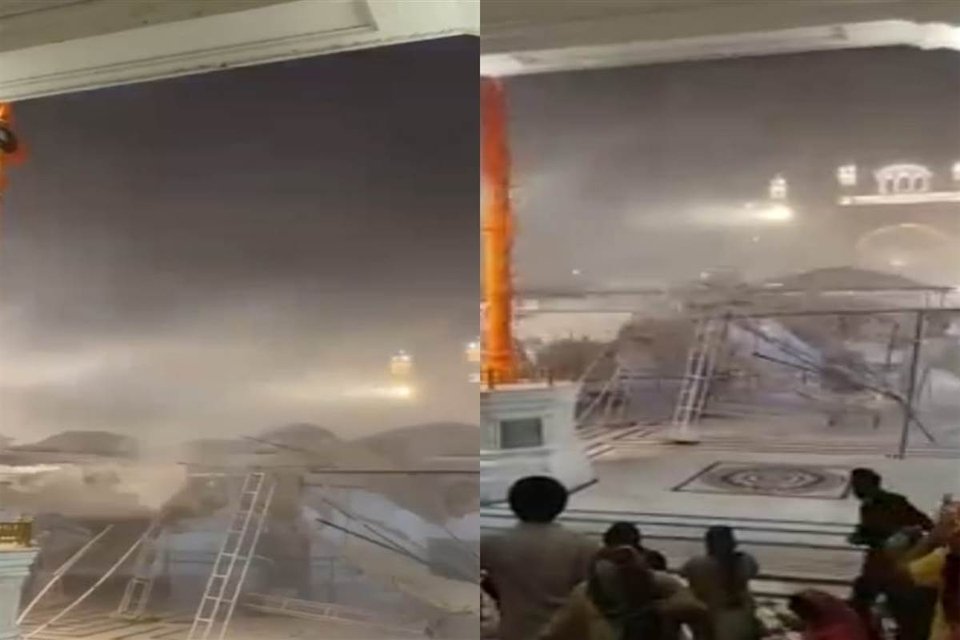 ਅੰਮ੍ਰਿਤਸਰ – ਬੀਤੀ ਰਾਤ ਤੇਜ਼ ਹਵਾਵਾਂ ਤੇ ਭਾਰੀ ਝੱਖੜ ਨੇ ਸੱਚਖੰਡ ਸ੍ਰੀ ਹਰਿਮੰਦਰ ਸਾਹਿਬ ਵਿਖੇ ਲੱਗੇ ਸੰਗਤ ਦੀ ਸਹੂਲਤ ਲਈ ਆਰਜ਼ੀ ਸ਼ਮਿਆਨੇ ਉਖੇੜ ਦਿੱਤੇ। ਇਹ ਆਰਜ਼ੀ ਸ਼ਮਿਆਨੇ ਸੱਚਖੰਡ ਸ੍ਰੀ ਹਰਿਮੰਦਰ ਸਾਹਿਬ ਵਿਖੇ ਸੰਗਤਾਂ ਦੀ ਸਹੂਲਤ ਲਈ ਜਿੱਥੇ ਦਰਸ਼ਨੀ ਡਿਓੜੀ ਦੇ ਬਾਹਰ ਵਾਰ ਅਤੇ ਸ੍ਰੀ ਅਕਾਲ ਤਖ਼ਤ ਸਾਹਿਬ ਦੇ ਬਾਹਰਲੇ ਪਾਸੇ ਲਗਾਏ ਗਏ ਹਨ। ਉੱਥੇ ਹੀ ਗੁਰਦੁਆਰਾ ਸ੍ਰੀ ਮੰਜੀ ਸਾਹਿਬ ਦੀਵਾਨ ਹਾਲ ਦੇ ਬਾਹਰ ਅਤੇ ਲੰਗਰ ਸ੍ਰੀ ਗੁਰੂ ਰਾਮਦਾਸ ਜੀ ਦੇ ਬਾਹਰ ਵਿਖੇ ਵੀ ਆਰਜ਼ੀ ਤੌਰ ਤੇ ਸ਼ਾਮਿਆਨੇ ਲਗਾਏ ਗਏ ਸਨ। ਗਰਮੀ ਤੋਂ ਬਚਾਅ ਲਈ ਲਗਾਏ ਸ਼ਮਿਆਨੇ ਬੀਤੀ ਰਾਤ ਆਏ ਝੱਖੜ ਨੇ ਉਖੇੜ ਦਿੱਤੇ ਸਨ। ਝੱਖੜ ਕਾਰਨ ਭਾਵੇਂ ਸਾਰੇ ਸ਼ਮਿਆਨੇ ਉਖੜ ਗਏ, ਪਰ ਫਿਰ ਵੀ ਕੋਈ ਜਾਨੀ ਨੁਕਸਾਨ ਨਹੀਂ ਹੋਇਆ।
