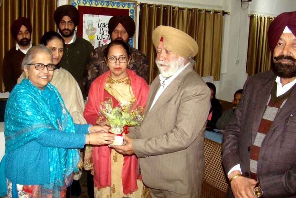 ਖ਼ਾਲਸਾ ਕਾਲਜ ਆਫ਼ ਐਜ਼ੂਕੇਸ਼ਨ, ਜੀ. ਟੀ. ਰੋਡ ਵਿਖੇ ਪ੍ਰੋਗਰਾਮ ਮੌਕੇ ਡਾ. ਹਰਪ੍ਰੀਤ ਕੌਰ ਆਏ ਮਹਿਮਾਨਾਂ ਨੂੰ ਫੁੱਲਾਂ ਦਾ ਗੁਲਦਸਤਾ ਭੇਂਟ ਕਰਦੇ ਹੋਏ।