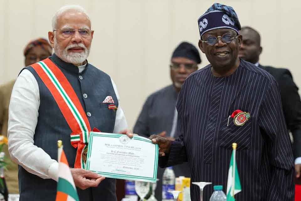 ਨਾਈਜੀਰੀਆ ਨੇ ਪ੍ਰਧਾਨ ਮੰਤਰੀ ਨਰਿੰਦਰ ਮੋਦੀ ਨੂੰ ਦੇਸ਼ ਦੇ ਦੂਜੇ ਸੱਭ ਤੋਂ ਵੱਡੇ ਕੌਮੀ ਪੁਰਸਕਾਰ ‘ਗ੍ਰੈਂਡ ਕਮਾਂਡਰ ਆਫ ਦਿ ਆਰਡਰ ਆਫ ਨਾਈਜਰ’ ਨਾਲ ਸਨਮਾਨਿਤ ਕੀਤਾ ਹੈ। ਪੁਰਸਕਾਰ ਪ੍ਰਾਪਤ ਕਰਨ ਤੋਂ ਬਾਅਦ ਅਪਣੇ ਬਿਆਨ ’ਚ ਮੋਦੀ ਨੇ ਕਿਹਾ, ‘‘ਮੈਨੂੰ ਨਾਈਜੀਰੀਆ ਵਲੋਂ ‘ਗ੍ਰੈਂਡ ਕਮਾਂਡਰ ਆਫ ਦਿ ਆਰਡਰ ਆਫ ਦਿ ਨਾਈਜਰ’ ਪੁਰਸਕਾਰ ਨਾਲ ਸਨਮਾਨਿਤ ਕੀਤੇ ਜਾਣ ’ਤੇ ਬਹੁਤ ਮਾਣ ਹੈ। ਮੈਂ ਇਸ ਨੂੰ ਬਹੁਤ ਨਿਮਰਤਾ ਨਾਲ