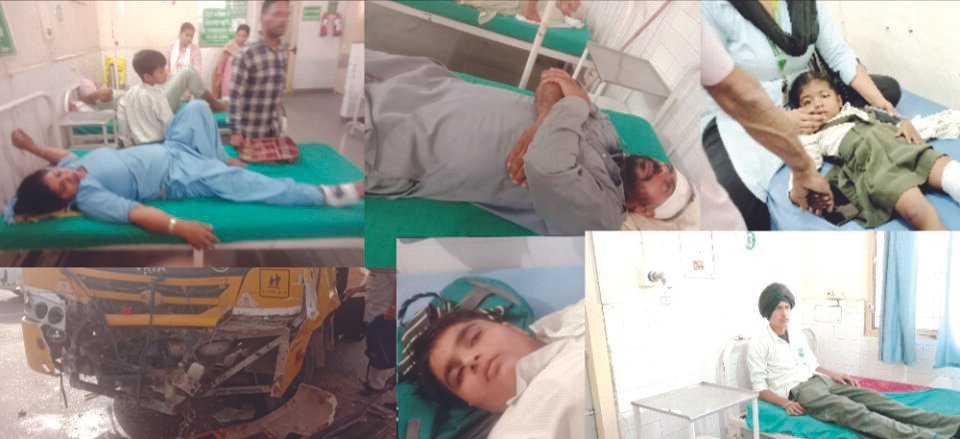 ਧਨੌਲਾ – ਬਰਨਾਲਾ ਚੰਡੀਗੜ੍ਹ ਮੁੱਖ ਮਾਰਗ ’ਤੇ ਧਨੌਲਾ ਨਜ਼ਦੀਕ ਇੱਕ ਪ੍ਰਾਈਵੇਟ ਸਕੂਲ ਦੀ ਬੱਸ ਅਤੇ ਟਰੱਕ ਦੀ ਟੱਕਰ ਵਿੱਚ 14 ਬੱਚੇ ਜ਼ਖਮੀ ਹੋ ਗਏ, ਜਿਨ੍ਹਾਂ ਨੂੰ ਰਾਹਗੀਰਾਂ ਵੱਲੋਂ ਅਤੇ ਐਂਬੂਲੈਂਸ ਦੀ ਮਦਦ ਸਦਕਾ ਸਿਵਲ ਹਸਪਤਾਲ ਧਨੌਲਾ ਵਿਖੇ ਇਲਾਜ ਲਈ ਦਾਖਲ ਕਰਵਾਇਆ ਗਿਆ, ਜਾਣਕਾਰੀ ਅਨੁਸਾਰ ਗ੍ਰੀਨ ਫੀਲਡ ਕੌਨਵੈਂਟ ਸਕੂਲ ਦਾਨਗੜ ਦੀ ਬੱਸ ਜੋ ਪਿੰਡ ਪੰਧੇਰ ਤੋਂ ਚੱਲ ਕੇ ਵੱਖ ਵੱਖ ਪਿੰਡਾਂ ਵਿੱਚੋਂ ਬੱਚੇ ਲੈ ਕੇ ਰਾਸ਼ਟਰੀ ਮਾਰਗ ਤੋਂ ਆਉਂਦੀ ਹੋਈ ਪਿੰਡ ਦਾਨਗੜ ਜਾ ਰਹੀ ਸੀ, ਜਿਵੇਂ ਹੀ ਪਿੰਡ ਭੱਠਲਾਂ ਤੇ ਧਨੌਲਾ ਨੂੰ ਜਾ ਰਹੇ ਰਸਤੇ ਕੋਲ ਪਹੁੰਚੀ ਤਾਂ ਇੱਕ ਟਰੱਕ ਜੋ ਕਿ ਪਿੰਡ ਭੱਠਲਾਂ ਤੋਂ ਧਨੌਲਾ ਨੂੰ ਜਾ ਰਿਹਾ ਸੀ, ਸੜਕ ਪਾਰ ਕਰ ਰਿਹਾ ਸੀ ਤਾਂ ਸਕੂਲੀ ਬੱਸ ਦੀ ਰਫਤਾਰ ਤੇਜ਼ ਹੋਣ ਕਾਰਨ ਟਰੱਕ ਨਾਲ ਟਕਰਾ ਗਈ । ਟੱਕਰ ਇੰਨੀ ਭਿਆਨਕ ਸੀ ਕਿ ਬੱਸ ਦਾ ਅਗਲਾ ਹਿੱਸਾ ਬਿਲਕੁੱਲ ਚਕਨਾਚੂਰ ਹੋ ਗਿਆ, ਬੱਸ ਦੇ ਡਰਾਈਵਰ, ਅਤੇ ਹੈਲਪਰ ਮਹਿਲਾ ਸਮੇਤ 14 ਦੇ ਕਰੀਬ ਬੱਚੇ ਜ਼ਖਮੀ ਹੋ ਗਏ। ਮੌਕੇ ’ਤੇ ਹਾਜ਼ਰ ਲੋਕਾਂ ਨੇ ਦੱਸਿਆ ਕਿ ਸਕੂਲੀ ਬੱਸ ਦੀ ਰਫਤਾਰ ਜ਼ਿਆਦਾ ਤੇਜ਼ ਹੋਣ ਕਾਰਨ ਇਹ ਹਾਦਸਾ ਵਾਪਰਿਆ। ਦੱਸਣਯੋਗ ਹੈ ਕਿ ਸਕੂਲ ਮੈਨੇਜਮੈਂਟ ਵੱਲੋਂ 30 ਸਵਾਰੀਆਂ ਦੀ ਬੱਸ ਵਿਚ ਚਾਲੀ ਤੋਂ ਜ਼ਿਆਦਾ ਬੱਚੇ ਸਵਾਰ ਸਨ। ਜਿਹੜੇ ਇਕ ਦੂਸਰੇ ਵੱਲ ਨੂੰ ਮੂੰਹ ਕਰਕੇ ਬੈਠੇ ਸਨ। ਘਰਾਂ ਦੇ ਕੱਲੇ ਕੱਲੇ ਬੱਚਿਆਂ ਦੀ ਸੁਰੱਖਿਆ ਪ੍ਰਤੀ ਸੰਜੀਦਗੀ ਨਾ ਹੋਣ ਕਾਰਣ ਸਿਰਫ ਮੋਟੀਆਂ ਮੋਟੀਆਂ ਫੀਸਾਂ ਫੰਡਾਂ ਰੂਪੀ ਪੈਸੇ ਬਟੋਰਨ ਲਗੇ ਹਨ। ਰੋਜਾਨਾ ਹੋ ਰਹੇ ਸਕੂਲੀ ਹਾਦਸਿਆਂ ਨੂੰ ਰੋਕਣ ਲਈ ਪ੍ਰਸ਼ਾਸਨ ਨੂੰ ਵਿਸ਼ੇਸ ਧਿਆਨ ਦੇਣਾ ਚਾਹੀਦਾ ਹੈ।