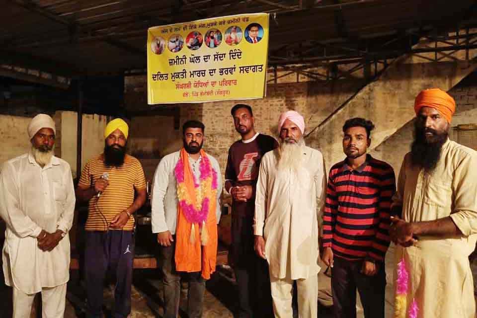 ਸੰਗਰੂਰ – ਮਲੇਰਕੋਟਲਾ ਦੇ ਪਿੰਡ ਤੋਲੇਵਾਲ ਤੋਂ ਸ਼ੁਰੂ ਹੋਇਆ ਦਲਿਤ ਮੁਕਤੀ ਮਾਰਚ ਨਾਭਾ, ਪਟਿਆਲਾ ਦਿਹਾਤੀ, ਸਨੌਰ, ਘਨੌਰ, ਪਟਿਆਲਾ, ਸਮਾਣਾ , ਭਵਾਨੀਗੜ੍ਹ, ਦਿੜ੍ਹਬਾ, ਮੂਨਕ ਲਹਿਰਾ ਹੁੰਦੇ ਹੋਏ ਕਾਫ਼ਲਾ ਸੰਗਰੂਰ ਦੇ ਪਿੰਡ ਲੋਗੋਂਵਾਲ ਕੁਨਰਾ, ਦੁੱਗਾਂ, ਬਹਾਦਰਪੁਰ ਅਤੇ ਭੱਮਾਬੱਧੀ ਵਿੱਚ ਬੀਤੀ ਰਾਤ ਪਹੁੰਚਿਆ ਤਾਂ ਮਜ਼ਦੂਰਾਂ ਨੇ ਇਸ ਕਾਫ਼ਲੇ ਦਾ ਨਾਅਰੇ ਲਾ ਕੇ ਤੇ ਹਾਰ ਪਾਕੇ ਜ਼ੋਰਦਾਰ ਸਵਾਗਤ ਕੀਤਾ।