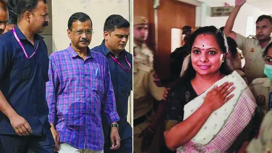 ਨਵੀਂ ਦਿੱਲੀ – ਇਥੋਂ ਦੀ ਅਦਾਲਤ ਨੇ ਦਿੱਲੀ ਸ਼ਰਾਬ ਨੀਤੀ ਮਾਮਲੇ ’ਚ ਮੁੱਖ ਮੰਤਰੀ ਅਰਵਿੰਦ ਕੇਜਰੀਵਾਲ ਤੇ ਬੀਆਰਐੱਸ ਆਗੂ ਕੇ. ਕਵਿਤਾ ਦੀ ਨਿਆਂਇਕ ਹਿਰਾਸਤ 7 ਮਈ ਤੱਕ ਵਧਾ ਦਿੱਤੀ ਗਈ ਹੈ। ਸੀਬੀਆਈ ਅਤੇ ਈਡੀ ਮਾਮਲਿਆਂ ਲਈ ਵਿਸ਼ੇਸ਼ ਜੱਜ ਕਾਵੇਰੀ ਬਵੇਜਾ ਨੇ ਰਿਮਾਂਡ ਦੀ ਮਿਆਦ ਖਤਮ ਹੋਣ ’ਤੇ ਵੀਡੀਓ ਕਾਨਫਰੰਸ ਰਾਹੀਂ ਅਦਾਲਤ ਵਿੱਚ ਪੇਸ਼ ਕੀਤੇ ਜਾਣ ਤੋਂ ਬਾਅਦ ਉਨ੍ਹਾਂ ਦੀ ਹਿਰਾਸਤ ਵਿੱਚ ਵਾਧਾ ਕਰ ਦਿੱਤਾ। ਜੱਜ ਨੇ ਤਿਲੰਗਾਨਾ ਦੀ ਐੱਮਐੱਲਸੀ ਅਤੇ ਸਾਬਕਾ ਮੁੱਖ ਮੰਤਰੀ ਕੇ ਚੰਦਰਸ਼ੇਖਰ ਰਾਓ ਦੀ ਧੀ ਕਵਿਤਾ ਦੀ ਨਿਆਂਇਕ ਹਿਰਾਸਤ ਵੀ ਸੀਬੀਆਈ ਦੁਆਰਾ ਜਾਂਚ ਕੀਤੇ ਜਾ ਰਹੇ ਭਿ੍ਰਸ਼ਟਾਚਾਰ ਦੇ ਮਾਮਲੇ ਵਿੱਚ 7 ਮਈ ਤੱਕ ਵਧਾ ਦਿੱਤੀ ਹੈ।