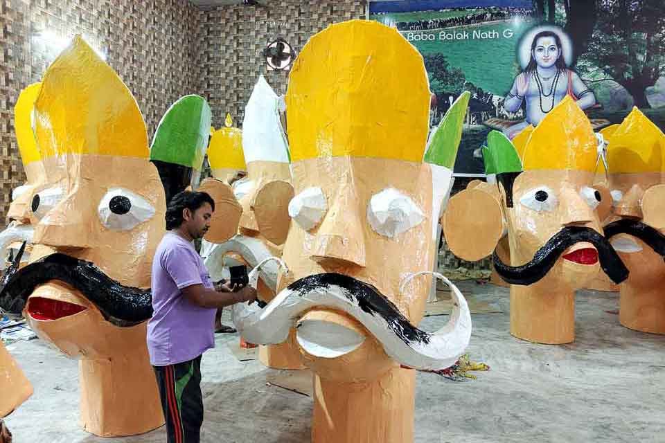 ਜੰਮੂ – ਦੁਸਹਿਰੇ ਦਾ ਤਿਉਹਾਰ ਭਾਰਤ ਦੇ ਵਿੱਚ 12 ਅਕਤੂਬਰ ਨੂੰ ਮਨਾਇਆ ਜਾ ਰਿਹਾ ਹੈ। ਇਸ ਤਿਉਹਾਰ ਨੂੰ ਮਨਾਉਣ ਦੇ ਲਈ ਵੱਖ-ਵੱਖ ਸੰਸਥਾਵਾਂ ਦੇ ਵਲੋਂ ਤਿਆਰੀਆ ਬੜੇ ਜੋਰਾਂ-ਸ਼ੋਰਾਂ ਨਾਲ ਕੀਤੀਆਂ ਜਾ ਰਹੀਆਂ ਹਨ। ਬੀਤੇ ਦਿਨ ਦੁਸਹਿਰੇ ਦੇ ਤਿਉਹਾਰ ਤੋਂ ਪਹਿਲਾਂ ਜੰਮੂ ਵਿੱਚ ਇੱਕ ਕਲਾਕਾਰ ਰਾਵਣ ਦੇ ਪੁਤਲੇ ਨੂੰ ਅੰਤਿਮ ਛੋਹਾਂ ਦਿੰਦਾ ਹੋਇਆ।