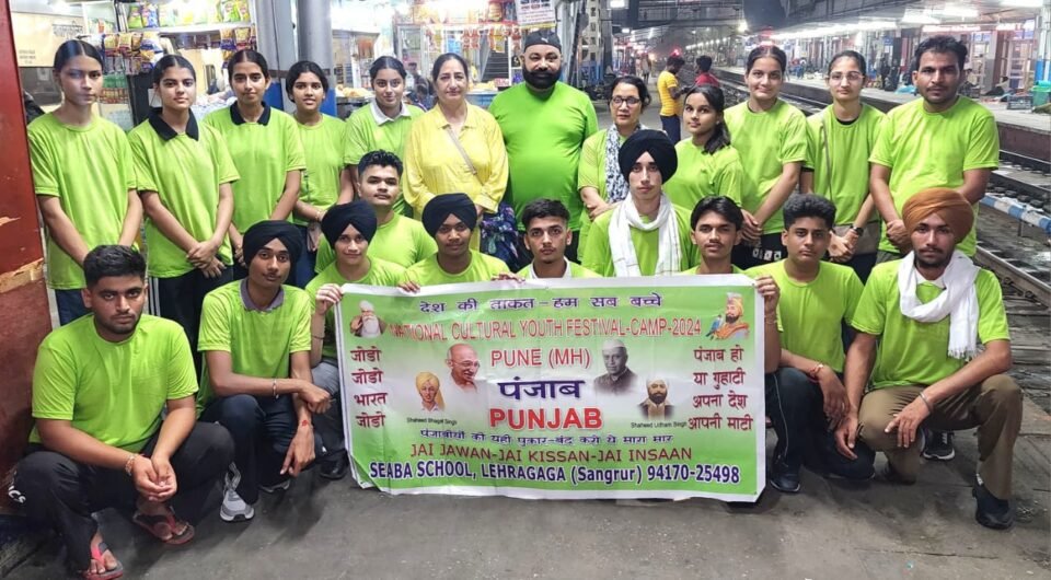 ਲਹਿਰਾਗਾਗਾ – ਨੈਸ਼ਨਲ ਯੂਥ ਪ੍ਰੋਜੈਕਟ ਵੱਲੋਂ ਪੂਨੇ (ਮਹਾਂਰਾਸ਼ਟਰ) ਵਿਖੇ ਕਰਵਾਏ ਜਾ ਰਹੇ ਚਾਰ-ਰੋਜ਼ਾ ਨੈਸ਼ਨਲ ਕਲਚਰਲ ਯੂਥ ਫੈਸਟੀਵਲ ‘ਚ ਸ਼ਮੂਲੀਅਤ ਕਰਨ ਲਈ ਲਈ ਸੀਬਾ ਸਕੂਲ, ਲਹਿਰਾਗਾਗਾ ਦੀ 23 ਮੈਂਬਰੀ ਟੀਮ ਪ੍ਰਬੰਧਕ ਕੰਵਲਜੀਤ ਸਿੰਘ ਢੀਂਡਸਾ ਦੀ ਅਗਵਾਈ ਹੇਠ ਰਵਾਨਾ ਹੋਈ।