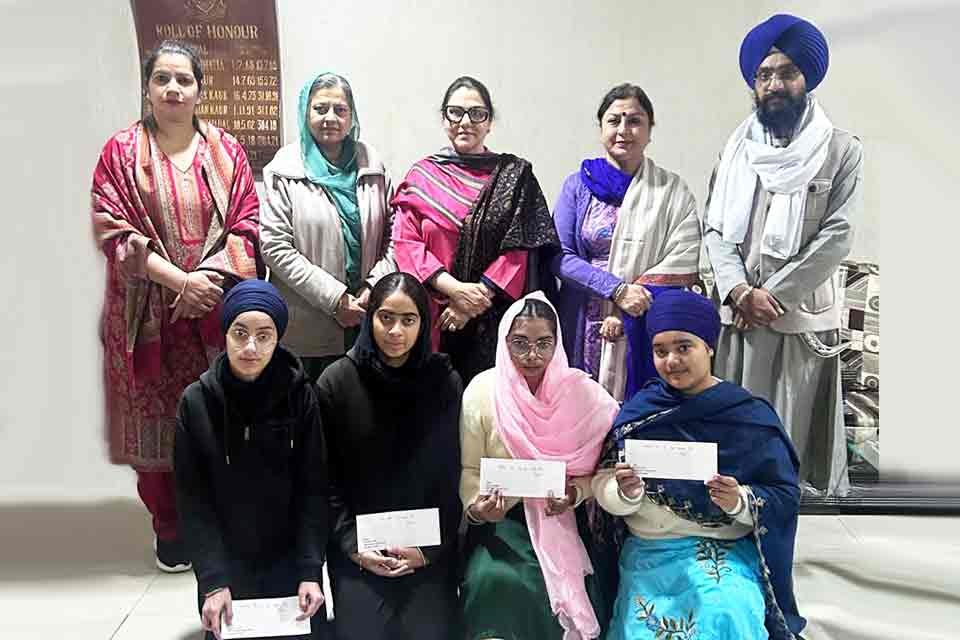ਅੰਮ੍ਰਿਤਸਰ – ਖ਼ਾਲਸਾ ਕਾਲਜ ਫ਼ਾਰ ਵੂਮੈਨ ਦੀਆਂ ਧਾਰਮਿਕ ਪ੍ਰੀਖਿਆ ’ਚ ਅੱਵਲ ਰਹਿਣ ਵਾਲੀਆਂ 4 ਵਿਦਿਆਰਥਣਾਂ ਨੂੰ ਸ਼੍ਰੋਮਣੀ ਗੁਰਦੁਆਰਾ ਪ੍ਰਬੰਧਕ ਕਮੇਟੀ ਵੱਲੋਂ ਵਜ਼ੀਫ਼ਾ ਪ੍ਰਦਾਨ ਕੀਤਾ ਗਿਆ।