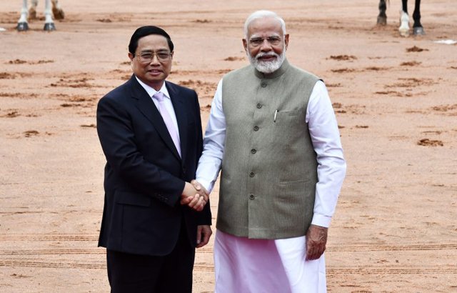 ਨਵੀਂ ਦਿੱਲੀ – ਪ੍ਰਧਾਨ ਮੰਤਰੀ ਨਰਿੰਦਰ ਮੋਦੀ ਨੇ ਵੀਅਤਨਾਮ ਦੇ ਪ੍ਰਧਾਨ ਮੰਤਰੀ ਫਾਮ ਮਿਨ ਚਿਨ ਨਾਲ ਮੁਲਾਕਾਤ ਕੀਤੀ, ਜੋ ਕਿ ਦੋਹਾਂ ਦੇਸ਼ਾਂ ਵਿਚਕਾਰ ਵਿਆਪਕ ਰਣਨੀਤਿਕ ਭਾਈਵਾਲੀ ਨੂੰ ਹੋਰ ਵਧਾਉਣ ਦੇ ਸਨਮੁੱਖ ਸੀ। ਚਿਨ ਮੰਗਲਵਾਰ ਰਾਤ ਤਿੰਨ ਰੋਜ਼ਾ ਦੌਰੇ ਲਈ ਭਾਰਤ ਪੁੱਜੇ ਹਨ। ਵਿਦੇਸ਼ ਮੰਤਰਾਲਾ ਦੇ ਬੁਲਾਰੇ ਰਣਧੀਰ ਜੈਸਵਾਲ ਨੇ ‘ਐਕਸ’ ਤੇ ਪੋਸਟ ਵਿਚ ਕਿਹਾ ਕਿ ਪ੍ਰਧਾਨ ਮੰਤਰੀ ਨਰਿੰਦਰ ਮੋਦੀ ਨੇ ਵੀਅਤਨਾਮ ਦੇ ਪ੍ਰਧਾਨ ਮੰਤਰ ਫਾਮ ਮਿਨ੍ਹ ਚਿਨ੍ਹ ਦਾ ਗਰਮਜੋਸ਼ੀ ਨਾਲ ਸਵਾਗਤ ਕੀਤਾ। ਉਨ੍ਹਾਂ ਨੇ ਗੱਲਬਾਤ ਤੋਂ ਪਹਿਲਾਂ ਕਿਹਾ ਕਿ ਭਾਰਤ-ਵੀਅਤਨਾਮ ਵਿਆਪਕ ਰਣਨੀਤਕ ਭਾਈਵਾਲੀ ਨੂੰ ਹੋਰ ਵਧਾਉਣ ਲਈ ਠੋਸ ਚਰਚਾ ਏਜੰਡੇ ‘ਤੇ ਹੈ, ਪਿਛਲੇ ਕੁਝ ਸਾਲਾਂ ਵਿੱਚ ਭਾਰਤ ਅਤੇ ਵੀਅਤਨਾਮ ਦਰਮਿਆਨ ਰਣਨੀਤਕ ਸਬੰਧ ਡੂੰਘੇ ਹੋਏ ਹਨ।