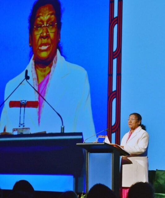 ਔਕਲੈਂਡ – ਭਾਰਤ ਦੀ ਰਾਸ਼ਟਰਪਤੀ ਮਾਣਯੋਗ ਦਰੋਪਦੀ ਮੁਰਮੂ ਨੇ ਆਪਣੇ ਤਿੰਨ ਦਿਨਾਂ ਦੌਰੇ ਦੇ ਆਖਰੀ ਦਿਨ ਔਕਲੈਂਡ ਵਿਖੇ ਇਕ ਹੋਏ ‘ਕਮਿਊਨਿਟੀ ਰਿਸੈਪਸ਼ਨ’ ਸਮਾਗਮ ਦੇ ਵਿਚ ਭਾਰਤੀਆਂ ਦੇ ਲਗਪਗ 500 ਮੈਂਬਰਾਂ ਨੂੰ ਸੰਬੋਧਨ ਕੀਤਾ। ਉਨ੍ਹਾਂ ਦੇ ਨਾਲ ਘੱਟ ਗਿਣਤੀ ਮੰਤਰਾਲੇ ਦੇ ਮੰਤਰੀ ਸ੍ਰੀ ਜਾਰਜ਼ ਕੁਰੀਅਨ ਅਤੇ ਦੋ ਹੋਰ ਸੰਸਦ ਮੈਂਬਰ ਸਨ। ਪ੍ਰੋਗਰਾਮ ਦੀ ਸ਼ੁਰੂਆਤ ਭਾਰਤੀ ਨਿ੍ਰਤ ਮੰਡਲੀਆਂ ਦੇ ਨਾਲ ਹੋਈ। ਰਾਸ਼ਟਰਪਤੀ ਦੇ ਪਹੁੰਚਣ ਦੇ ਬਾਅਦ ਦੋਹਾਂ ਦੇਸ਼ਾਂ ਦੇ ਰਾਸ਼ਟਰੀ ਗੀਤ ਦਾ ਸੰਗੀਤ ਵਜਾਇਆ ਗਿਆ। ਸਮਾਗਮ ਨੂੰ ਸਭ ਤੋਂ ਪਹਿਲਾਂ ਭਾਰਤੀ ਹਾਈ ਕਮਿਸ਼ਨਰ ਸ੍ਰੀਮਤੀ ਨੀਤਾ ਭੂਸ਼ਣ ਨੇ ਸੰਬੋਧਨ ਕੀਤਾ। ਇਸ ਤੋਂ ਬਾਅਦ ਰਾਸ਼ਟਰਪਤੀ ਸ੍ਰੀਮਤੀ ਮਾਣਯੋਗ ਦਰੋਪਦੀ ਨੇ ਭਾਰਤੀਆਂ ਨੂੰ ਸੰਬੋਧਨ ਕਰਦਿਆਂ ਕਿਹਾ ਕਿ ਮੇਰੇ ਲਈ ਖੁਸ਼ੀ ਅਤੇ ਸਨਮਾਨ ਵਾਲੀ ਗੱਲ ਹੈ ਕਿ ਮੈਂ ਨਿਊਜ਼ੀਲੈਂਡ ਵਸਦੇ ਭਾਈਚਾਰੇ ਦੇ ਵਿਚ ਅੱਜ ਖੜੀ ਹਾਂ। ਉਨ੍ਹਾਂ ਕਿਹਾ ਕਿ ਨਿਊਜ਼ੀਲੈਂਡ ਦੇ ਵਿਚ ਭਾਰਤੀਆਂ ਦੇ ਸਾਹਸ ਅਤੇ ਉਪਲਬਧੀਆਂ ਦੇ ਲਈ ਉਹ ਕੁਰਬਾਨ ਜਾਂਦੀ ਹੈ। ਉਨ੍ਹਾਂ ਆਪਣੇ ਸੰਬੋਧਨ ਵਿਚ ਨਿਊਜ਼ੀਲੈਂਡ ਦੇ ਸਾਬਕਾ ਗਵਰਨਰ ਜਨਰਲ ਅਨੰਦ ਸੱਤਿਆਨੰਦ ਦਾ ਜ਼ਿਕਰ ਕੀਤਾ ਅਤੇ ਮਾਊਂਟ ਐਵਰੈਸਟ ਦੀ ਚੋਟੀ ਸਰ ਕਰਨ ਵਾਲੇ ਭਾਰਤ ਸਰਕਾਰ ਵੱਲੋਂ ਮਰਨੋ ਉਪਰੰਤ ਪਦਮ ਵਿਭੂਸ਼ਣ ਨਾਲ ਸਨਮਾਨਿਤ ਨਿਊਜ਼ੀਲੈਂਡ ਦੇ ਐਡਮੰਡ ਹਿਲੈਰੀ ਨੂੰ ਵੀ ਯਾਦ ਕੀਤਾ। ਉਨ੍ਹਾਂ ਨਿਊਜ਼ੀਲੈਂਡ-ਭਾਰਤ ਦਰਮਿਆਨ ਸਿਖਿਆ ਅਤੇ ਵਪਾਰ ਦੀ ਗੱਲਬਾਤ ਕੀਤੀ। ਉਨ੍ਹਾਂ 1926 ਦੇ ਵਿਚ ਇੰਡੀਆ ਤੋਂ ਨਿਊਜ਼ੀਲੈਂਡ ਆਉਣ ਵਾਲੀ ਪਹਿਲੀ ਇੰਡੀਅਨ ਆਰਮੀ ਹਾਕੀ ਟੀਮ ਦਾ ਜ਼ਿਕਰ ਵੀ ਕੀਤਾ। ਇਸ ਟੀਮ ਦੇ ਵਿਚ ਸਟਾਰ ਪਲੇਅਰ ਧਿਆਨ ਚੰਦ ਸਨ। ਵਰਨਣਯੋਗ ਹੈ ਕਿ 1901 ਦੇ ਵਿਚ ਇਥੇ ਸਿਰਫ 24 ਭਾਰਤੀ ਸਨ ਅਤੇ 1936 ਦੇ ਵਿਚ 1200 ਭਾਰਤੀ ਸਨ। ਰਾਸ਼ਟਰਪਤੀ ਨੇ ਐਲਾਨ ਕੀਤਾ ਕਿ ਔਕਲੈਂਡ ਵਿਖੇ ਭਾਰਤ ਦਾ ਦੂਜਾ ਸਫਾਰਤਖਾਨਾ ਜਲਦੀ ਖੋਲ੍ਹਿਆ ਜਾ ਰਿਹਾ ਹੈ। ਉਨ੍ਹਾਂ ਕਿਹਾ ਕਿ ਭਾਰਤ ਜਲਦੀ ਹੀ ਦੁਨੀਆ ਦੀ ਤੀਜੀ ਵੱਡੀ ਆਰਥਿਕ ਸ਼ਕਤੀ ਬਨਣ ਵਾਲਾ ਹੈ। ਉਨ੍ਹਾਂ ਆਖਿਰ ਵਿਚ ਅਪੀਲ ਕੀਤੀ ਕਿ ਆਈ ਰਲ ਕੇ ਭਾਰਤ ਅਤੇ ਨਿਊਜ਼ੀਲੈਂਡ ਦਾ ਨਾਂਅ ਰੌਸ਼ਨ ਕਰੋ।