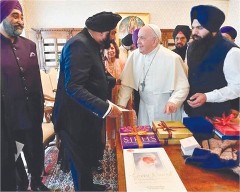 ਵੈਟੀਕਨ ਸਿਟੀ – ਪੋਪ ਫ੍ਰਾਂਸਿਸ ਨੇ ਬੀਤੇ ਦਿਨੀਂ ਸਿੱਖ ਵਫ਼ਦ ਨਾਲ ਮੁਲਾਕਾਤ ਕੀਤੀ। “ਵਿਸ਼ਵਾਸ ਅਤੇ ਸੇਵਾ ਆਪਸ ਵਿੱਚ ਨੇੜਿਓਂ ਜੁੜੇ ਹੋਏ ਹਨ ਅਤੇ ਸਾਨੂੰ ਪ੍ਰਮਾਤਮਾ ਦੇ ਨੇੜੇ ਲੈ ਜਾਂਦੇ ਹਨ।” ਪੋਪ ਫ੍ਰਾਂਸਿਸ ਨੇ ਸੰਯੁਕਤ ਅਰਬ ਅਮੀਰਾਤ ਦੇ ਦੁਬਈ ਵਿੱਚ ਗੁਰੂ ਨਾਨਕ ਦਰਬਾਰ ਸਿੱਖ ਟੈਂਪਲ ਦੀ ਪਹਿਲਕਦਮੀ ਲਈ ਰੋਮ ਵਿੱਚ ਇਕੱਠੇ ਹੋਏ ਵੱਖ-ਵੱਖ ਦੇਸ਼ਾਂ ਤੋਂ ਆਏ ਸਿੱਖ ਵਫ਼ਦ ਦੇ ਮੈਂਬਰਾਂ ਨੂੰ ਸੰਬੋਧਨ ਕਰਦਿਆਂ ਇਹ ਵਿਚਾਰ ਪੇਸ਼ ਕੀਤੇ। ਪੋਪ ਦਸੰਬਰ ਦੇ ਸ਼ੁਰੂ ਵਿੱਚ ਸੰਯੁਕਤ ਅਰਬ ਅਮੀਰਾਤ ਦੇ ਦੁਬਈ ਵਿੱਚ ਸੀ.ਓ.ਪੀ. 28 ਸੰਮੇਲਨ ਵਿੱਚ ਸ਼ਾਮਲ ਹੋਣ ਵਾਲੇ ਹਨ। ਮਨੁੱਖੀ ਭਾਈਚਾਰੇ ਦੇ ਦਸਤਾਵੇਜ਼ ’ਤੇ ਹਸਤਾਖਰ ਕਰਨ ਲਈ ਫਰਵਰੀ 2019 ਦੇ ਅੰਤਰ-ਧਾਰਮਿਕ ਸੰਮੇਲਨ ਦੇ ਦੌਰੇ ਤੋਂ ਬਾਅਦ ਯੂ.ਏ.ਈ. ਦੀ ਇਹ ਉਸ ਦੀ ਦੂਜੀ ਯਾਤਰਾ ਹੈ। ਉਹ ਸੰਯੁਕਤ ਰਾਸ਼ਟਰ ਜਲਵਾਯੂ ਸੰਮੇਲਨ ਵਿਚ ਸ਼ਾਮਲ ਹੋਣ ਵਾਲੇ ਪਹਿਲੇ ਰਾਜ ਦੇ ਮੁਖੀ ਹੋਣਗੇ। ਪੋਪ ਨੇ ਕਿਹਾ,‘ਅਜਿਹੇ ਯਤਨ, ਵਿਸ਼ਵਾਸ ਨੂੰ ਜੀਉਣ ਅਤੇ ਸਮਾਜ ਦੀ ਭਲਾਈ ਵਿੱਚ ਯੋਗਦਾਨ ਪਾਉਣ ਦੇ ਤੁਹਾਡੇ ਯਤਨਾਂ ਦੀ ਗਵਾਹੀ ਦਿੰਦੇ ਹਨ,‘। ਖਾਸ ਕਰਕੇ ਜਦੋਂ ਉਹ ਆਪਣੇ ਆਪ ਨੂੰ ਏਕੀਕ੍ਰਿਤ ਕਰਨ ਦੀ ਕੋਸ਼ਿਸ਼ ਕਰਦੇ ਹਨ। ਪੋਪ ਨੇ ਲੋਕਾਂ ਵਿਚਕਾਰ ਸਹਿਯੋਗ ਵਧਾਉਣ ਅਤੇ ਗਰੀਬਾਂ, ਲੋੜਵੰਦਾਂ ਤੇ ਦੁਖੀ ਲੋਕਾਂ ਦੀ ਸੇਵਾ ਕਰਨ ਲਈ ਆਪਣੀ ਵਚਨਬੱਧਤਾ ਲਈ ਸਿੱਖ ਭਾਈਚਾਰੇ ਦਾ ਧੰਨਵਾਦ ਕੀਤਾ। ਪੋਪ ਨੇ ਅੱਗੇ ਕਿਹਾ,‘ਵਾਸਤਵ ਵਿੱਚ ਪਰਮਾਤਮਾ ਨੂੰ ਪਾਉਣ ਦਾ ਸੱਚਾ ਮਾਰਗ, ਜਿਵੇਂ ਕਿ ਤੁਹਾਡਾ ਪਵਿੱਤਰ ਗ੍ਰੰਥ ‘ਗੁਰੂ ਗ੍ਰੰਥ ਸਾਹਿਬ’ ਵਿਚ ਲਿਖਿਆ ਹੈ, ਸਾਡੇ ਸਾਥੀ ਮਨੁੱਖਾਂ ਦੀ ਸੇਵਾ ਵਿੱਚ ਹੈ’ ਵਫ਼ਦ ਨੂੰ ਆਪਣਾ ਆਸ਼ੀਰਵਾਦ ਦੇਣ ਤੋਂ ਪਹਿਲਾਂ ਪੋਪ ਨੇ ਪ੍ਰਾਰਥਨਾ ਕਰਕੇ ਆਪਣਾ ਸੰਦੇਸ਼ ਸਮਾਪਤ ਕੀਤਾ,‘ਸੇਵਾ ਹਮੇਸ਼ਾ ਤੁਹਾਡੇ ਜੀਵਨ ਦਾ ਰਾਹ ਬਣੀ ਰਹੇ‘ ਅਤੇ ਇਹ ਕਿ ਤੁਸੀਂ ‘ਭਾਈਚਾਰੇ ਅਤੇ ਸਮਾਨਤਾ, ਨਿਆਂ ਅਤੇ ਸ਼ਾਂਤੀ ਦੀ ਭਾਵਨਾ ਨੂੰ ਉਤਸ਼ਾਹਿਤ ਕਰਨ ਲਈ ਲੋੜਵੰਦਾਂ ਦੀ ਸੇਵਾ ਕਰੋ।‘ ਜਿਨ੍ਹਾਂ ਦੀ ਤੁਸੀਂ ਸੇਵਾ ਕਰਦੇ ਹੋ ਉਨ੍ਹਾਂ ਲਈ ਅਸੀਸ ਬਣੋ!”