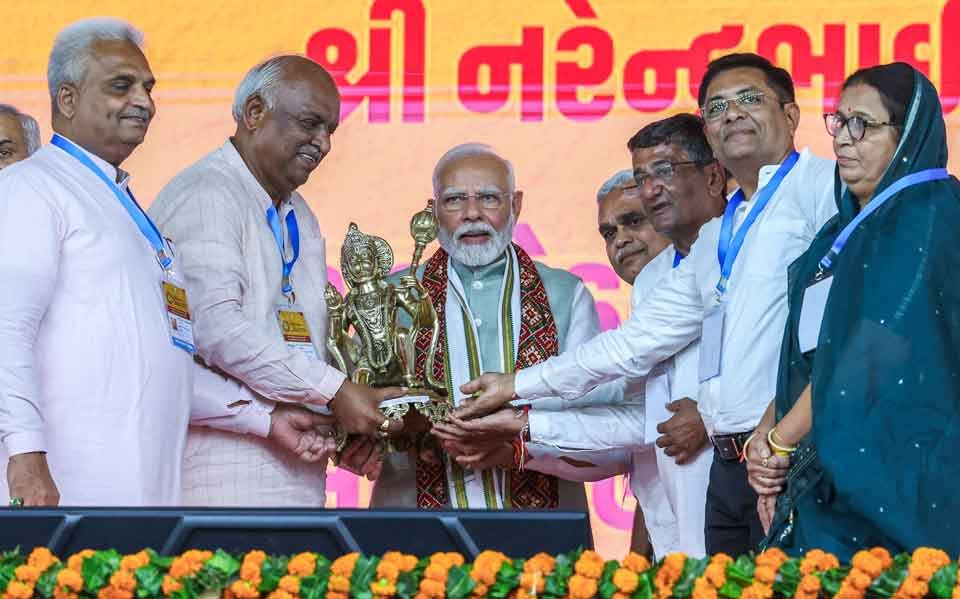 ਅਹਿਮਦਾਬਾਦ – ਭਾਰਤ ਦੇ ਪ੍ਰਧਾਨ ਮੰਤਰੀ ਨਰਿੰਦਰ ਮੋਦੀ ਨੇ ਸੋਮਵਾਰ ਨੂੰ ਅਹਿਮਦਾਬਾਦ ਵਿੱਚ 8,000 ਕਰੋੜ ਰੁਪਏ ਤੋਂ ਵੱਧ ਦੇ ਕਈ ਵਿਕਾਸ ਪ੍ਰੋਜੈਕਟਾਂ ਦਾ ਉਦਘਾਟਨ ਕੀਤਾ ਅਤੇ ਨੀਂਹ ਪੱਥਰ ਰੱਖਿਆ। ਇਸ ਮੌਕੇ ਭਾਰਤ ਦੇ ਕੇਂਦਰੀ ਜਲ ਸ਼ਕਤੀ ਮੰਤਰੀ ਸੀ.ਆਰ. ਪਾਟਿਲ, ਗੁਜਰਾਤ ਦੇ ਰਾਜਪਾਲ, ਰਾਜ ਦੇ ਮੁੱਖ ਮੰਤਰੀ ਭੂਪੇਂਦਰ ਪਟੇਲ ਅਤੇ ਕਈ ਹੋਰ ਨੇਤਾ ਮੌਜੂਦ ਸਨ। ਫੋਟੋ ਤੇ ਵੇਰਵਾ: ਏ.ਐਨ.ਆਈ.।