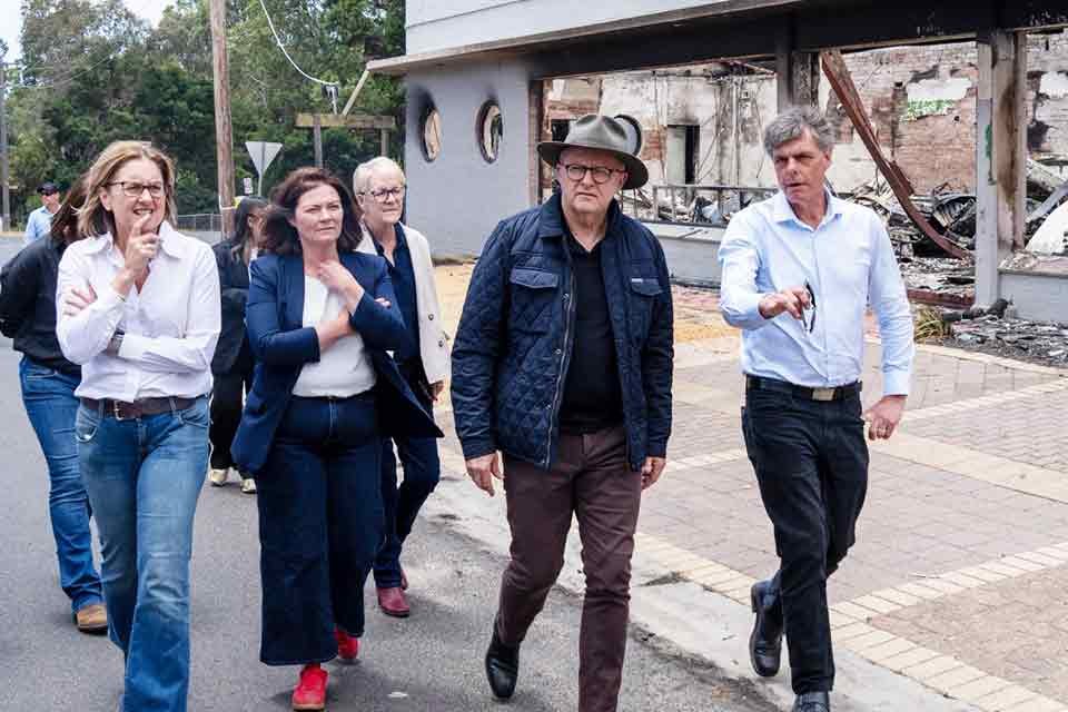 ਪ੍ਰਧਾਨ ਮੰਤਰੀ ਐਂਥਨੀ ਐਲਬਨੀਜ਼ ਅਤੇ ਪ੍ਰੀਮੀਅਰ ਜੈਸਿੰਟਾ ਐਲਨ ਨੇ ਅੱਜ ਸੈਂਟ੍ਰਲ ਵਿਕਟੋਰੀਆ ਵਿੱਚ ਬੁਸ਼ਫਾਇਰ ਪ੍ਰਭਾਵਿਤ ਇਲਾਕੇ ਅਤੇ ਐਮਰਜੈਂਸੀ ਸੇਵਾਵਾਂ ਦਾ ਦੌਰਾ ਕੀਤਾ।