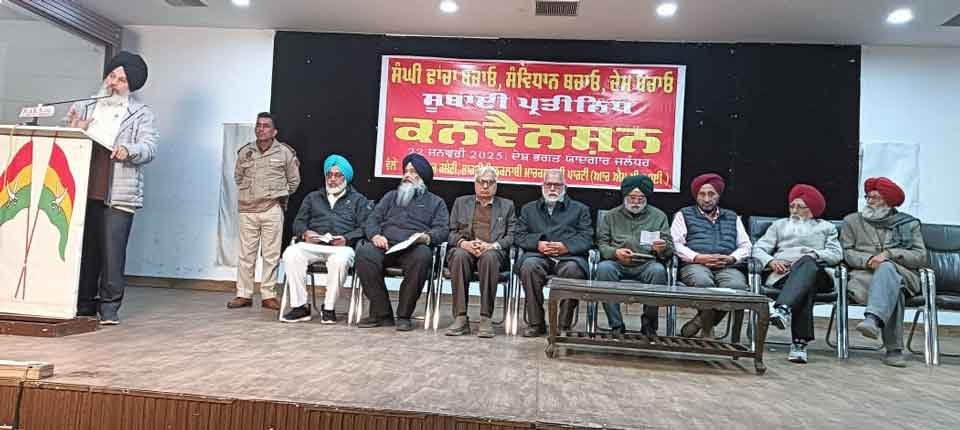 ਜਲੰਧਰ – “ਵੱਖੋ-ਵੱਖ ਧਰਮਾਂ ਨੂੰ ਮੰਨਣ ਵਾਲੇ ਸਭਨਾਂ ਭਾਰਤੀਆਂ ਦੀ ਭਾਈਚਾਰਕ ਸਾਂਝ ਨੂੰ ਖੇਰੂੰ-ਖੇਰੂੰ ਕਰਨ ਵਾਲੇ, ਰਾਸ਼ਟਰੀ ਸੋਇਮ ਸੇਵਕ ਸੰਘ (ਆਰ.ਐਸ.ਐਸ.) ਦੇ ਫਿਰਕੂ-ਫਾਸ਼ੀ, ਫੁੱਟਪਾਊ ਏਜੰਡੇ ਦੀ ਪੂਰਤੀ ਲਈ ਦੇਸ਼ ਦਾ ਰਾਜ-ਭਾਗ ਚਲਾ ਰਹੀ ਭਾਜਪਾ ਦੀ ਅਗਵਾਈ ਹੇਠਲੀ ਮੋਦੀ-03 ਸਰਕਾਰ ਵਲੋਂ ਦੇਸ਼ ਦੇ ਸੰਵਿਧਾਨ ਤੇ ਸੰਘਾਤਮਕ ਢਾਂਚੇ ’ਤੇ ਕੀਤੇ ਜਾ ਰਹੇ ਹਮਲੇ, ਲੱਖਾਂ ਸ਼ਹਾਦਤਾਂ ਤੇ ਅਦੁੱਤੀ ਕੁਰਬਾਨੀਆਂ ਸਦਕਾ ਹਾਸਲ ਕੀਤੀ ਦੇਸ਼ ਦੀ ਆਜ਼ਾਦੀ ਅਤੇ ਭੂਗੋਲਿਕ ਅਖੰਡਤਾ ਲਈ ਅਤਿ ਘਾਤਕ ਸਿੱਧ ਹੋਣਗੇ।’’ ਉਕਤ ਰਾਇ ਸਥਾਨਕ ਦੇਸ਼ ਭਗਤ ਯਾਦਗਾਰ ਦੇ ਗ਼ਦਰੀ ਸ਼ਹੀਦ ਵਿਸ਼ਣੂ ਗਣੇਸ਼ ਪਿੰਗਲੇ ਹਾਲ ਵਿਖੇ ਸਾਥੀ ਰਤਨ ਸਿੰਘ ਰੰਧਾਵਾ ਦੀ ਪ੍ਰਧਾਨਗੀ ਹੇਠ ਹੋਈ, ਵੱਖੋ-ਵੱਖ ਸਿਆਸੀ ਤੇ ਸਮਾਜਿਕ ਧਿਰਾਂ ਅਤੇ ਉੱਘੇ ਬੁੱਧੀਜੀਵੀਆਂ ਦੀ ਭਰਵੀਂ ਹਾਜ਼ਰੀ ਵਾਲੀ “ਸੰਘੀ ਢਾਂਚਾ ਬਚਾਓ, ਸੰਵਿਧਾਨ ਬਚਾਓ ਦੇਸ਼ ਬਚਾਓ’’ ਨੁਮਾਇੰਦਾ ਕਨਵੈਨਸ਼ਨ ਵਲੋਂ ਸਰਵ ਸੰਮਤੀ ਨਾਲ ਪ੍ਰਵਾਨ ਕੀਤੇ ਗਏ ਮਤੇ ਰਾਹੀਂ ਪ੍ਰਗਟ ਕੀਤੀ ਗਈ ਹੈ। ਸਾਥੀ ਪਰਗਟ ਸਿੰਘ ਜਾਮਾਰਾਏ ਵਲੋਂ ਰੱਖੇ ਗਏ ਉਕਤ ਮਤੇ ਰਾਹੀਂ ਦੇਸ਼ ਦੀਆਂ ਖੱਬੀਆਂ, ਜਮਹੂਰੀ, ਧਰਮ ਨਿਰਪੱਖ ਧਿਰਾਂ ਅਤੇ ਪ੍ਰਗਤੀਸ਼ੀਲ ਤੇ ਨਿਆਂ ਪਸੰਦ ਤਾਕਤਾਂ ਨੂੰ ਦੇਸ਼ ਨੂੰ ਅਸਥਿਰ ਕਰਨ ਵਾਲੇ ਇਸ ਹੱਲੇ ਖਿਲਾਫ ਸਮੂਹ ਦੇਸ਼ ਵਾਸੀਆਂ ਨੂੰ ਇਕਜੁੱਟ ਕਰਨ ਅਤੇ ਭਾਰਤ ਦੇ ਸੰਵਿਧਾਨ ਤੇ ਜਮਹੂਰੀ, ਧਰਮ ਨਿਰਪੱਖ, ਫੈਡਰਲ ਢਾਂਚੇ ਦੀ ਰਾਖੀ ਲਈ ਤਿੱਖੇ, ਬੱਝਵੇਂ ਸੰਘਰਸ਼ ਵਿੱਢਣ ਦੀ ਅਪੀਲ ਕੀਤੀ ਗਈ ਹੈ। ਸੰਘਰਸ਼ ਦੀ ਨਿੱਗਰ ਸ਼ੁਰੂਆਤ ਕਰਨ ਲਈ ਉਕਤ ਮਤੇ ਦੀ ਸੇਧ ਵਿਚ ਵਿਸ਼ਾਲ ਭਾਗੀਦਾਰੀ ਵਾਲੀਆਂ ਜਿਲ੍ਹਾ ਪੱਧਰੀ ਕਨਵੈਨਸ਼ਨਾਂ ਕਰਨ ਦਾ ਸੱਦਾ ਦਿੱਤਾ ਗਿਆ ਹੈ।
