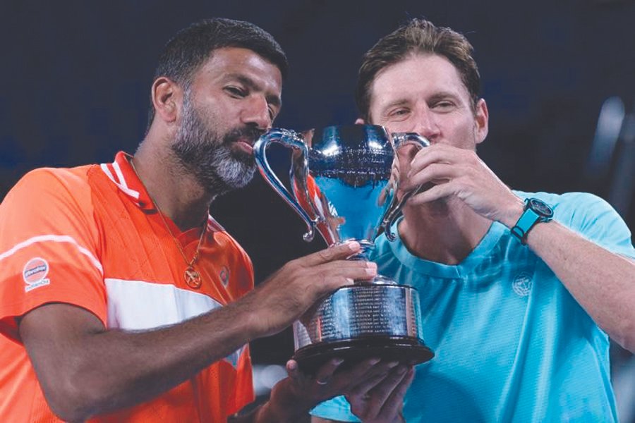 ਮੈਲਬੌਰਨ – ਰੋਹਨ ਬੋਪੰਨਾ ਨੇ ਮੈਥਿਊ ਏਬਡੇਨ ਦੇ ਨਾਲ ਮਿਲ ਕੇ ਸ਼ਨੀਵਾਰ ਨੂੰ ਇੱਥੇ ਸਿਮੋਨ ਬੋਲੇਲੀ ਅਤੇ ਐਂਡਰੀਆ ਵਾਵਾਸੋਰੀ ’ਤੇ ਸ਼ਾਨਦਾਰ ਜਿੱਤ ਨਾਲ ਆਸਟ੍ਰੇਲੀਅਨ ਓਪਨ ਪੁਰਸ਼ ਡਬਲਜ਼ ਦਾ ਖਿਤਾਬ ਜਿੱਤ ਲਿਆ। ਇਸ ਨਾਲ ਉਹ ਗ੍ਰੈਂਡ ਸਲੈਮ ਖਿਤਾਬ ਜਿੱਤਣ ਦਾ ਕਾਰਨਾਮਾ ਕਰਨ ਵਾਲੇ ਤੀਜੇ ਭਾਰਤੀ ਖਿਡਾਰੀ ਬਣ ਗਏ। ਦੂਜਾ ਦਰਜਾ ਪ੍ਰਾਪਤ ਬੋਪੰਨਾ-ਇਬਡੇਨ ਦੀ ਜੋੜੀ ਨੇ ਇੱਕ ਘੰਟੇ 39 ਮਿੰਟ ਤਕ ਚੱਲੇ ਫਾਈਨਲ ਵਿੱਚ ਗੈਰ ਦਰਜਾ ਪ੍ਰਾਪਤ ਜੋੜੀ ਨੂੰ 7-6(0) 7-5 ਨਾਲ ਹਰਾਇਆ। ਇਸ ਤੋਂ ਪਹਿਲਾਂ ਸਿਰਫ਼ ਲਿਏਂਡਰ ਪੇਸ ਅਤੇ ਮਹੇਸ਼ ਭੂਪਤੀ ਨੇ ਪੁਰਸ਼ ਟੈਨਿਸ ਵਿੱਚ ਭਾਰਤ ਲਈ ਵੱਡੇ ਖ਼ਿਤਾਬ ਜਿੱਤੇ ਹਨ, ਜਦਕਿ ਸਾਨੀਆ ਮਿਰਜ਼ਾ ਨੇ ਮਹਿਲਾ ਟੈਨਿਸ ਵਿੱਚ ਇਹ ਉਪਲਬਧੀ ਹਾਸਲ ਕੀਤੀ ਹੈ। ਬੋਪੰਨਾ ਦਾ ਇਹ ਦੂਜਾ ਗ੍ਰੈਂਡ ਸਲੈਮ ਖਿਤਾਬ ਹੈ। 2017 ਵਿੱਚ ਉਨ੍ਹਾਂ ਨੇ ਕੈਨੇਡੀਅਨ ਗੈਬਰੀਏਲਾ ਡਾਬਰੋਵਸਕੀ ਨਾਲ ਫ੍ਰੈਂਚ ਓਪਨ ਮਿਕਸਡ ਡਬਲਜ਼ ਦਾ ਖਿਤਾਬ ਜਿੱਤਿਆ। ਬੋਪੰਨਾ 43 ਸਾਲ ਦੀ ਉਮਰ ਵਿੱਚ ਪੁਰਸ਼ ਟੈਨਿਸ ਵਿੱਚ ਗ੍ਰੈਂਡ ਸਲੈਮ ਚੈਂਪੀਅਨ ਬਣਨ ਵਾਲੇ ਸਭ ਤੋਂ ਵੱਡੀ ਉਮਰ ਦੇ ਖਿਡਾਰੀ ਵੀ ਬਣ ਗਏ ਹਨ। ਉਨ੍ਹਾਂ ਨੇ ਜੀਨ-ਜੂਲੀਅਨ ਰੋਜਰ ਦਾ ਰਿਕਾਰਡ ਤੋੜਿਆ, ਜਿਸ ਨੇ ਮਾਰਸੇਲੋ ਅਰੇਵੋਲਾ ਨਾਲ 2022 ਵਿੱਚ ਫ੍ਰੈਂਚ ਓਪਨ ਪੁਰਸ਼ ਡਬਲਜ਼ ਟਰਾਫੀ ਜਿੱਤੀ ਸੀ। ਬੋਪੰਨਾ ਸੋਮਵਾਰ ਨੂੰ ਜਾਰੀ ਹੋਣ ਵਾਲੀ ਏਟੀਪੀ ਰੈਂਕਿੰਗ ਵਿੱਚ ਨੰਬਰ ਇੱਕ ਖਿਡਾਰੀ ਬਣ ਜਾਣਗੇ।