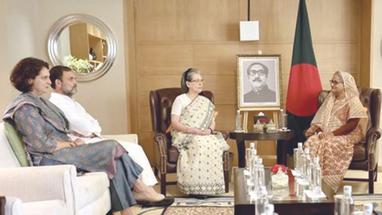 ਨਵੀਂ ਦਿੱਲੀ – ਕਾਂਗਰਸ ਸੰਸਦੀ ਦਲ ਦੀ ਮੁਖੀ ਸੋਨੀਆ ਗਾਂਧੀ ਨੇ ਸੋਮਵਾਰ ਯਾਨੀ ਅੱਜ ਬੰਗਲਾਦੇਸ਼ ਦੀ ਪ੍ਰਧਾਨ ਮੰਤਰੀ ਸ਼ੇਖ ਹਸੀਨਾ ਨਾਲ ਨਵੀਂ ਦਿੱਲੀ ’ਚ ਮੁਲਾਕਾਤ ਕੀਤੀ। ਇਸ ਮੁਲਾਕਾਤ ’ਚ ਉਨ੍ਹਾਂ ਨਾਲ ਰਾਏਬਰੇਲੀ ਤੋਂ ਚੁਣੇ ਗਏ ਸੰਸਦ ਮੈਂਬਰ ਰਾਹੁਲ ਗਾਂਧੀ ਅਤੇ ਕਾਂਗਰਸ ਜਨਰਲ ਸਕੱਤਰ ਪਿ੍ਰਯੰਕਾ ਗਾਂਧੀ ਵੀ ਮੌਜੂਦ ਰਹੇ। ਇਸ ਮੁਲਾਕਾਤ ਦੀ ਜਾਣਕਾਰੀ, ਕਾਂਗਰਸ ਨੇ ’ਐਕਸ’ ਹੈਂਡਲ ’ਤੇ ਇਕ ਪੋਸਟ ਰਾਹੀਂ ਦਿੱਤੀ। ਇਸ ਦੌਰਾਨ ਬੰਗਲਾਦੇਸ਼ ਦੀ ਪ੍ਰਧਾਨ ਮੰਤਰੀ ਸ਼ੇਖ ਹਸੀਨਾ ਸੋਨੀਆ ਗਾਂਧੀ ਨੂੰ ਗਲ਼ ਲੱਗ ਕੇ ਮਿਲੀ। ਇਸ ਦੇ ਨਾਲ ਹੀ ਉਨ੍ਹਾਂ ਨੇ ਰਾਹੁਲ ਅਤੇ ਪਿ੍ਰਯੰਕਾ ਨੂੰ ਵੀ ਗਲ਼ ਲਗਾਇਆ। ਸ਼ੇਖ ਹਸੀਨਾ ਪ੍ਰਧਾਨ ਮੰਤਰੀ ਨਰਿੰਦਰ ਮੋਦੀ ਦੇ ਸਹੁੰ ਚੁੱਕ ਸਮਾਰੋਹ ’ਚ ਸ਼ਾਮਲ ਹੋਣ ਲਈ ਸ਼ਨੀਵਾਰ ਨੂੰ ਦਿੱਲੀ ਪਹੁੰਚੀ, ਇਸ ਤੋਂ ਬਾਅਦ ਉਹ ਬੀਤੇ ਦਿਨ ਐਤਵਾਰ ਨੂੰ ਰਾਸ਼ਟਰਪਤੀ ਭਵਨ ’ਚ ਪ੍ਰਧਾਨ ਮੰਤਰੀ ਦੇ ਸਹੁੰ ਚੁੱਕ ਸਮਾਰੋਹ ’ਚ ਸ਼ਾਮਲ ਹੋਈ। ਇਸ ਪ੍ਰੋਗਰਾਮ ’ਚ ਮਾਲਦੀਵ ਦੇ ਰਾਸ਼ਟਰਪਤੀ ਮੁਹੰਮਦ ਮੁਈਜ਼ੂ, ਨੇਪਾਲ ਦੇ ਪ੍ਰਧਾਨ ਮੰਤਰੀ ਪੁਸ਼ਪ ਕਮਲ ਦਹਿਲ ’ਪ੍ਰਚੰਡ’ ਅਤੇ ਸ਼੍ਰੀਲੰਕਾ ਦੇ ਰਾਸ਼ਟਰਪਤੀ ਰਾਨਿਲ ਵਿਕਰਮਸਿੰਘੇ ਸਮੇਤ ਭਾਰਤ ਦੇ ਗੁਆਂਢੀ ਦੇਸ਼ਾਂ ਅਤੇ ਹਿੰਦ ਮਹਾਸਾਗਰ ਖੇਤਰ ਦੇ ਸੀਨੀਅਰ ਨੇਤਾਵਾਂ ਨੇ ਹਿੱਸਾ ਲਿਆ।