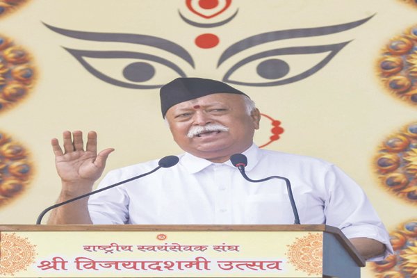ਜ਼ੋਰ ਦਿੰਦਿਆਂ ਕਿਹਾ ਕਿ ਕਮਜ਼ੋਰੀ ਗੁਨਾਹ ਹੈ। ਉਨ੍ਹਾਂ ਕਿਹਾ, ‘‘ਕਮਜ਼ੋਰ ਦੀ ਤਾਂ ਭਗਵਾਨ ਵੀ ਪ੍ਰਵਾਹ ਨਹੀਂ ਕਰਦਾ।’’ ਉਨ੍ਹਾਂ ਕਿਹਾ ਕਿ ਵਿਅਕਤੀਗਤ ਅਤੇ ਕੌਮੀ ਚਰਿੱਤਰ ਦੀ ਮਜ਼ਬੂਤੀ ‘ਧਰਮ ਦੀ ਜਿੱਤ’ ਦਾ ਆਧਾਰ ਬਣਦੀ ਹੈ। ਭਾਗਵਤ ਨੇ ਕਿਹਾ ਕਿ ਭਾਰਤ ਵਿਚ ਆਸਾਂ-ਉਮੀਦਾਂ ਦੇ ਨਾਲ ਚੁਣੌਤੀਆਂ ਤੇ ਸਮੱਸਿਆਵਾਂ ਵੀ ਹਨ। ਉਨ੍ਹਾਂ ਕਿਹਾ,‘‘ਸਾਨੂੰ ਅਹਿੱਲਿਆ ਬਾਈ ਹੋਲਕਰ,ਦਯਾਨੰਦ ਸਰਸਵਤੀ, ਬਿਰਸਾ ਮੁੰਡਾ ਅਤੇ ਅਜਿਹੀਆਂ ਹੋਰ ਮਹਾਨ ਹਸਤੀਆਂ ਤੋਂ ਪ੍ਰੇਰਣਾ ਲੈਣੀ ਚਾਹੀਦੀ ਹੈ, ਜਿਨ੍ਹਾਂ ਨੇ ਆਪਣਾ ਜੀਵਨ ਦੇਸ਼ ਦੀ ਭਲਾਈ, ਧਰਮ, ਸੱਭਿਆਚਾਰ ਅਤੇ ਸਮਾਜ ਲਈ ਸਮਰਪਿਤ ਕਰ ਦਿੱਤਾ।’’ ਭਾਗਵਤ ਨੇ ਕਿਹਾ ਕਿ ਭਾਰਤ ’ਚ ਉਮੀਦਾਂ ਅਤੇ ਇੱਛਾਵਾਂ ਤੋਂ ਇਲਾਵਾ ਚੁਨੌਤੀਆਂ ਅਤੇ ਸਮੱਸਿਆਵਾਂ ਵੀ ਹਨ। ਉਨ੍ਹਾਂ ਕਿਹਾ ਕਿ ਪਛਮੀ ਏਸ਼ੀਆ ’ਚ ਇਜ਼ਰਾਈਲ ਨਾਲ ਹਮਾਸ ਦਾ ਸੰਘਰਸ਼ ਹੁਣ ਕਿੱਥੇ ਤਕ ਫੈਲੇਗਾ, ਇਸ ਦੀ ਚਿੰਤਾ ਸਾਰਿਆਂ ਦੇ ਸਾਹਮਣੇ ਹੈ। ਭਾਗਵਤ ਨੇ ਇਸ ਗੱਲ ’ਤੇ ਵੀ ਸੰਤੁਸ਼ਟੀ ਜ਼ਾਹਰ ਕੀਤੀ ਕਿ ਜੰਮੂ-ਕਸ਼ਮੀਰ ’ਚ ਹਾਲ ਹੀ ’ਚ ਹੋਈਆਂ ਵਿਧਾਨ ਸਭਾ ਚੋਣਾਂ ਸ਼ਾਂਤੀਪੂਰਨ ਢੰਗ ਨਾਲ ਸੰਪੰਨ ਹੋਈਆਂ। ਉਨ੍ਹਾਂ ਭਰੋਸਾ ਪ੍ਰਗਟਾਇਆ ਕਿ ਦੇਸ਼ ਦੀ ਯੁਵਾ ਸ਼ਕਤੀ, ਮਾਂ ਸ਼ਕਤੀ, ਉੱਦਮੀ, ਕਿਸਾਨ, ਮਜ਼ਦੂਰ, ਨੌਜੁਆਨ, ਪ੍ਰਸ਼ਾਸਨ, ਸਰਕਾਰ ਸਾਰੇ ਅਪਣੇ ਕੰਮ ਪ੍ਰਤੀ ਵਚਨਬੱਧ ਰਹਿਣਗੇ। ਭਾਗਵਤ ਨੇ ਕਿਹਾ,‘‘ਗੁਆਂਢੀ ਦੇਸ਼ ਬੰਗਲਾਦੇਸ਼ ਵਿਚ, ਜੋ ਹਾਲ ਹੀ ਵਿਚ ਵੱਡੀ ਸਿਆਸੀ ਉਥਲ-ਪੁਥਲ ਵਿਚ ਰਿਹਾ ਹੈ, ਇਹ ਪ੍ਰਭਾਵ ਫੈਲਾਇਆ ਜਾ ਰਿਹਾ ਹੈ ਕਿ ਭਾਰਤ ਇਕ ਖਤਰਾ ਹੈ ਅਤੇ ਉਨ੍ਹਾਂ ਨੂੰ ਭਾਰਤ ਵਿਰੁਧ ਅਪਣੀ ਰੱਖਿਆ ਲਈ ਪਾਕਿਸਤਾਨ ਨਾਲ ਹੱਥ ਮਿਲਾਉਣਾ ਚਾਹੀਦਾ ਹੈ। ਅਜਿਹੀ ਸੋਚ ਕੌਣ ਫੈਲਾ ਰਿਹਾ ਹੈ।’’ ਆਰ.ਐਸ.ਐਸ. ਮੁਖੀ ਨੇ ਕਿਹਾ ਕਿ ਜਦੋਂ ਤਕ ਬੰਗਲਾਦੇਸ਼ ’ਚ ਕੱਟੜਪੰਥੀ ਸੁਭਾਅ ਮੌਜੂਦ ਹੈ, ਉਦੋਂ ਤਕ ਹਿੰਦੂਆਂ ਸਮੇਤ ਸਾਰੇ ਘੱਟ ਗਿਣਤੀ ਭਾਈਚਾਰਿਆਂ ਦੇ ਸਿਰਾਂ ’ਤੇ ਖਤਰੇ ਦੀ ਤਲਵਾਰ ਲਟਕਦੀ ਰਹੇਗੀ। ਉਨ੍ਹਾਂ ਕਿਹਾ,‘‘ਇਸ ਲਈ ਬੰਗਲਾਦੇਸ਼ ਤੋਂ ਭਾਰਤ ਦੀ ਘੁਸਪੈਠ ਅਤੇ ਇਸ ਦੇ ਨਤੀਜੇ ਵਜੋਂ ਆਬਾਦੀ ਦਾ ਅਸੰਤੁਲਨ ਆਮ ਲੋਕਾਂ ਲਈ ਵੀ ਗੰਭੀਰ ਚਿੰਤਾ ਦਾ ਵਿਸ਼ਾ ਬਣ ਗਿਆ ਹੈ।’’ ਉਨ੍ਹਾਂ ਕਿਹਾ,‘‘ਅਸੰਗਠਤ ਅਤੇ ਕਮਜ਼ੋਰ ਰਹਿਣਾ ਦੁਸ਼ਟਾਂ ਦੇ ਅੱਤਿਆਚਾਰਾਂ ਦਾ ਸੱਦਾ ਹੈ, ਇਸ ਸਬਕ ਨੂੰ ਦੁਨੀਆਂ ਭਰ ਦੇ ਹਿੰਦੂ ਸਮਾਜ ਨੂੰ ਵੀ ਅਪਣਾਉਣਾ ਚਾਹੀਦਾ ਹੈ।’’ ਭਾਗਵਤ ਨੇ ਕਿਹਾ ਕਿ ਸਰਕਾਰ ਨੂੰ ਕੰਟਰੋਲ ਕਰਨ ਵਾਲੀਆਂ ਅਸਿੱਧੀਆਂ ਤਾਕਤਾਂ (ਡੀਪ ਸਟੇਟ) ਅਤੇ ‘ਸਭਿਆਚਾਰਕ ਮਾਰਕਸਵਾਦੀ’ ਸਾਰੀਆਂ ਸਭਿਆਚਾਰਕ ਪਰੰਪਰਾਵਾਂ ਦੇ ਐਲਾਨਸ਼ੁਦਾ ਦੁਸ਼ਮਣ ਹਨ।