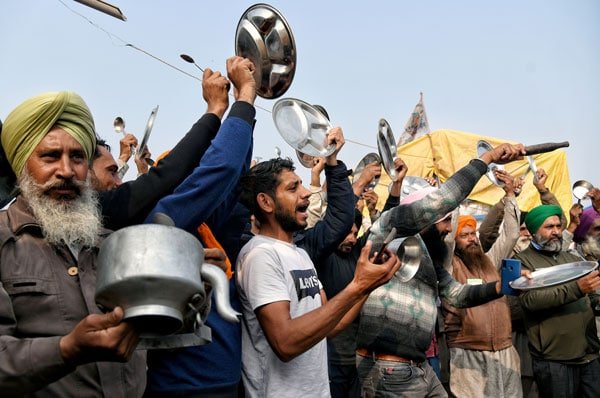 27 ਨਵੰਬਰ ਤੋਂ ਵੱਡੀ ਗਿਣਤੀ ਵਿੱਚ ਕਿਸਾਨਾਂ ਨੇ ਸਿੰਘੂ ਹੱਦ, ਟਿਕਰੀ ਅਤੇ ਹੋਰ ਹੱਦਾਂ ਤੇ ਪ੍ਰਸ਼ਾਸਨ ਤਰਫ਼ੋਂ ਰੋਕੇ ਜਾਣ ਤੇ ਉੱਥੇ ਹੀ ਮੋਰਚੇ ਲਗਾ ਦਿੱਤੇ ਹਨ। ਸਰਕਾਰ ਅਤੇ ਕਿਸਾਨਾਂ ਵਿੱਚਕਾਰ ਪੰਜ ਦੌਰਾਂ ਦੀ ਗੱਲਬਾਤ ਅਸਫ਼ਲ ਰਹੀ, ਸਰਕਾਰ ਦੁਆਰਾ ਮੀਟਿੰਗਾਂ ਦੌਰਾਨ ਦਿੱਤੇ ਖਾਣੇ ਨੂੰ ਨਾ ਖਾ ਕੇ ਕਿਸਾਨਾਂ ਦੁਆਰਾ ਆਪਣੇ ਨਾਲ ਲਿਆਂਦੇ ਖਾਣੇ ਨੂੰ ਖਾਣਾ, ਕਿਸਾਨਾਂ ਵਿੱਚ ਸਰਕਾਰ ਸੰਬੰਧੀ ਗੈਰ ਭਰੋਸੇਯੋਗਤਾ ਨੂੰ ਸਪੱਸ਼ਟ ਕਰਦਾ ਹੈ।