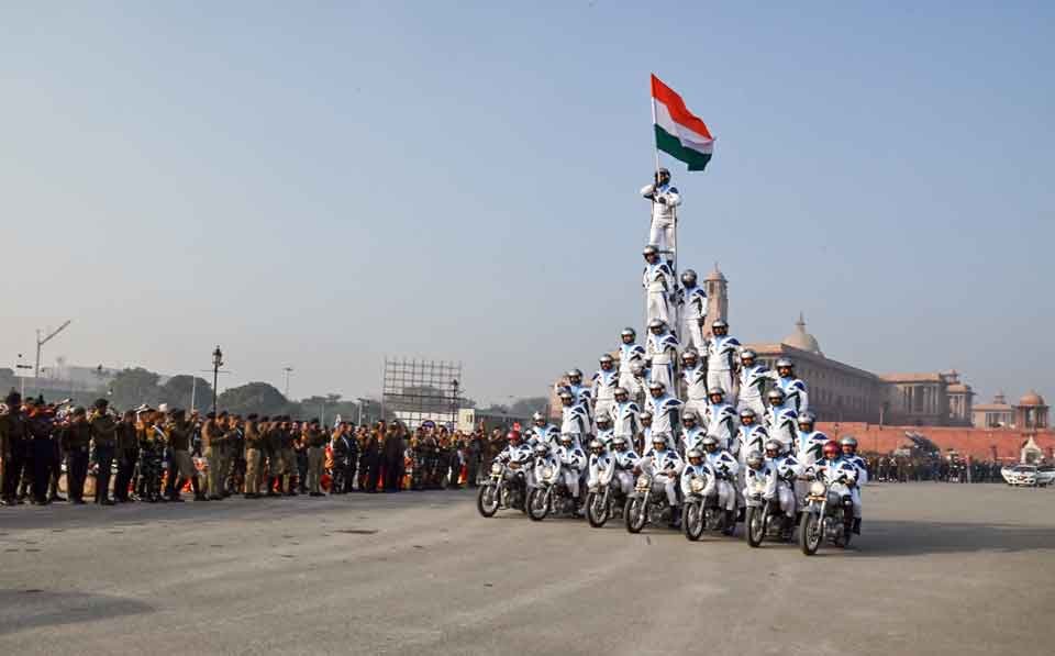 Indiaਭਾਰਤੀ ਫੌਜ ਦੀ ਮੋਟਰਸਾਈਕਲ ਟੀਮ ਨੇ ਵਿਸ਼ਵ ਰਿਕਾਰਡ ਬਣਾਇਆ ! 21/01/202521/01/2025 ਭਾਰਤੀ ਫੌਜ ਦੀ ਮੋਟਰਸਾਈਕਲ ਟੀਮ ਨੇ ਵਿਸ਼ਵ ਰਿਕਾਰਡ ਬਣਾਇਆ ! (ਫੋਟੋ: ਏ ਐਨ ਆਈ) ਨਵੀਂ ਦਿੱਲੀ – ਭਾਰਤੀ ਫੌਜ ਦੀ ਡੇਅਰਡੇਵਿਲਜ਼ ਮੋਟਰਸਾਈਕਲ ਟੀਮ ਨੇ ਸੋਮਵਾਰ ਨੂੰ ਨਵੀਂ ਦਿੱਲੀ ਦੇ ਕਾਰਤਵਯ ਪਥ ਵਿਖੇ ਗਣਤੰਤਰ ਦਿਵਸ ਪਰੇਡ 2025 ਰਿਹਰਸਲ ਦੌਰਾਨ ਚਲਦੇ ਮੋਟਰਸਾਈਕਲਾਂ ‘ਤੇ ਸਭ ਤੋਂ ਉੱਚੇ 40 ਵਿਅਕਤੀਆਂ ਦਾ ਮਨੁੱਖੀ ਪਿਰਾਮਿਡ ਬਣਾ ਕੇ ਵਿਸ਼ਵ ਰਿਕਾਰਡ ਬਣਾਇਆ।