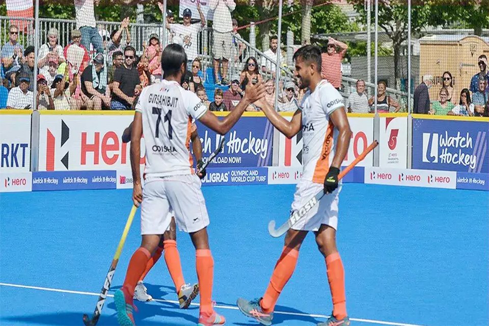 ਭਾਰਤੀ ਪੁਰਸ਼ ਟੀਮ ਨੇ ਮਲੇਸ਼ੀਆ ਅਤੇ ਪੋਲੈਂਡ ‘ਤੇ ਦਬਦਬਾ ਜਿੱਤ ਕੇ ਸ਼ੁਰੂਆਤੀ FIH ਹਾਕੀ ਫਾਈਵ ਟੂਰਨਾਮੈਂਟ ਦੇ ਫਾਈਨਲ ਵਿੱਚ ਪ੍ਰਵੇਸ਼ ਕੀਤਾ। ਪੂਰੇ ਟੂਰਨਾਮੈਂਟ ‘ਚ ਇਕ ਵੀ ਮੈਚ ਨਹੀਂ ਹਾਰਨ ਵਾਲੀ ਭਾਰਤੀ ਟੀਮ ਨੇ ਐਤਵਾਰ ਨੂੰ ਦੂਜੇ ਹਾਫ ‘ਚ ਚਾਰ ਗੋਲਾਂ ਨਾਲ ਮਲੇਸ਼ੀਆ ਨੂੰ 7-3 ਨਾਲ ਹਰਾਇਆ ਅਤੇ ਫਿਰ ਦਿਨ ਦੇ ਦੂਜੇ ਮੈਚ ‘ਚ ਪੋਲੈਂਡ ਨੂੰ 6-2 ਨਾਲ ਹਰਾਇਆ।ਕੋਚ ਗ੍ਰਾਹਮ ਰੀਡ ਦੀ ਟੀਮ ਇਸ ਤਰ੍ਹਾਂ ਰਾਊਂਡ-ਰੋਬਿਨ ਲੀਗ ਪੜਾਅ ਵਿੱਚ ਤਿੰਨ ਜਿੱਤਾਂ ਅਤੇ ਇੱਕ ਡਰਾਅ ਨਾਲ 10 ਅੰਕਾਂ ਨਾਲ ਪੰਜ ਟੀਮਾਂ ਦੀ ਸੂਚੀ ਵਿੱਚ ਸਿਖਰ ‘ਤੇ ਰਹੀ। ਭਾਰਤ ਨੇ ਸ਼ਨੀਵਾਰ ਨੂੰ ਮੇਜ਼ਬਾਨ ਸਵਿਟਜ਼ਰਲੈਂਡ ਨੂੰ 4-3 ਨਾਲ ਹਰਾਇਆ ਅਤੇ ਫਿਰ ਕੱਟੜ ਵਿਰੋਧੀ ਪਾਕਿਸਤਾਨ ਨਾਲ 2-2 ਨਾਲ ਡਰਾਅ ਖੇਡਿਆ।
