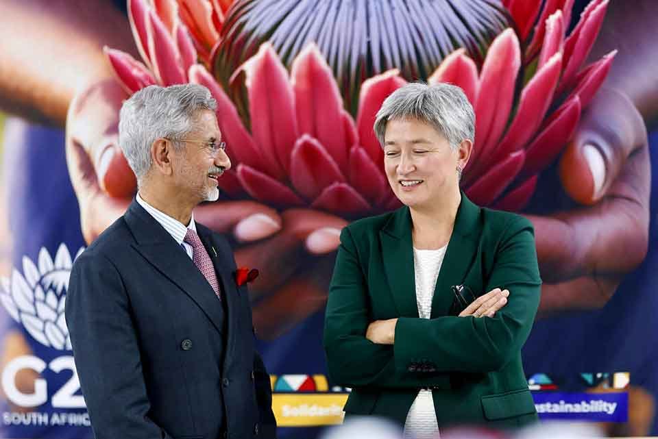 ਜੋਹਾਨਸਬਰਗ – ਭਾਰਤ ਦੇ ਵਿਦੇਸ਼ ਮੰਤਰੀ ਐਸ. ਜੈਸ਼ੰਕਰ ਨੇ ਸ਼ੁੱਕਰਵਾਰ ਨੂੰ ਜੋਹਾਨਸਬਰਗ ਵਿੱਚ ਜੀ-20 ਵਿਦੇਸ਼ ਮੰਤਰੀਆਂ ਦੀ ਮੀਟਿੰਗ ਤੋਂ ਇਲਾਵਾ ਆਸਟ੍ਰੇਲੀਅਨ ਵਿਦੇਸ਼ ਮੰਤਰੀ ਸੈਨੇਟਰ ਪੈਨੀ ਵੋਂਗ ਨਾਲ ਮੁਲਾਕਾਤ ਕੀਤੀ। ਭਾਰਤ ਦੇ ਵਿਦੇਸ਼ ਮੰਤਰੀ ਐਸ. ਜੈਸ਼ੰਕਰ ਨੇ ਸ਼ੁੱਕਰਵਾਰ ਨੂੰ ਜੋਹਾਨਸਬਰਗ ਵਿੱਚ ਭਾਰਤ-ਆਸਟ੍ਰੇਲੀਆ-ਫਰਾਂਸ ਤਿਪੱਖੀ ਮੀਟਿੰਗ ਵਿੱਚ ਆਸਟ੍ਰੇਲੀਅਨ ਵਿਦੇਸ਼ ਮੰਤਰੀ ਸੈਨੇਟਰ ਪੈਨੀ ਵੋਂਗ ਅਤੇ ਫਰਾਂਸ ਦੇ ਵਿਦੇਸ਼ ਮੰਤਰੀ ਜੀਨ-ਨੋਏਲ ਬੈਰੋਟ ਨਾਲ ਮੁਲਾਕਾਤ ਕੀਤੀ।