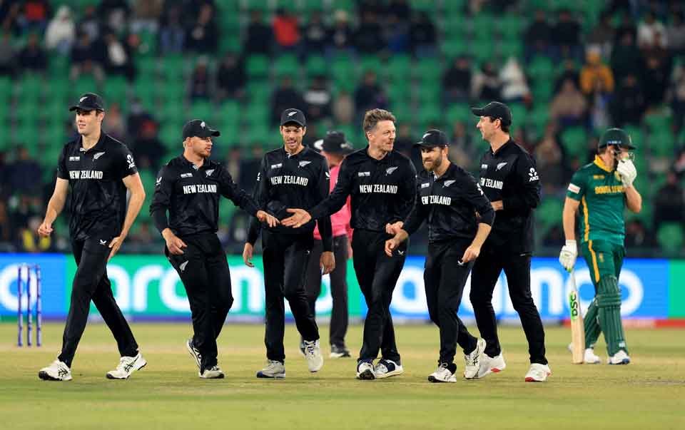 ਟੀਚੇ ਦਾ ਪਿੱਛਾ ਕਰਦਿਆਂ ਦੱਖਣੀ ਅਫ਼ਰੀਕਾ ਦੀ ਟੀਮ 9 ਵਿਕਟਾਂ ਦੇ ਨੁਕਸਾਨ ਨਾਲ 312 ਦੌੜਾਂ ਹੀ ਬਣਾ ਸਕੀ। ਅਫਰੀਕੀ ਟੀਮ ਲਈ ਡੇਵਿਡ ਮਿੱਲਰ ਨੇ 67 ਗੇਂਦਾਂ ’ਤੇ ਨਾਬਾਦ ਸੈਂਕੜਾ ਜੜਿਆ, ਪਰ ਉਹ ਟੀਮ ਨੂੰ ਜਿੱਤ ਦੀਆਂ ਬਰੂਹਾਂ ਤੱਕ ਨਹੀਂ ਲਿਜਾ ਸਕਿਆ। ਹੋਰਨਾਂ ਬੱਲੇਬਾਜ਼ਾਂ ਵਿਚੋਂ ਰਾਸੀ ਵੈਨ ਡਰ ਡੁਸੈਨ ਨੇ 69, ਕਪਤਾਨ ਟੇਂਬਾ ਬਵੁਮਾ ਨੇ 56 ਤੇ ਏਡਨ ਮਾਰਕਰਾਮ ਨੇ 31 ਦੌੜਾਂ ਦਾ ਯੋਗਦਾਨ ਪਾਇਆ। ਨਿਊਜ਼ੀਲੈਂਡ ਲਈ ਮਿਸ਼ੇਲ ਸੈਂਟਨਰ ਨੇ ਤਿੰਨ, ਮੈਟ ਹੈਨਰੀ ਤੇ ਗਲੈੱਨ ਫਿਲਿਪਸ ਨੇ ਦੋ ਦੋ ਅਤੇ ਮਿਸ਼ੇਲ ਬਰੇਸਵੈੱਲ ਤੇ ਰਚਿਨ ਰਵਿੰਦਰਾ ਨੇ ਇਕ ਇਕ ਵਿਕਟ ਲਈ।
