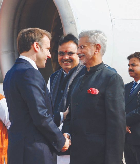 ਜੈਪੁਰ – ਫਰਾਂਸ ਦੇ ਰਾਸ਼ਟਰਪਤੀ ਇਮੈਨੁਅਲ ਮੈਕਰੋਨ ਵੀਰਵਾਰ ਨੂੰ ਦੋ ਦਿਨਾਂ ’ਤੇ ਭਾਰਤ ਪਹੁੰਚੇ ਹਨ। ਮੈਕਰੋਨ ਦੀ ਯਾਤਰਾ ਦੀ ਸ਼ੁਰੂਆਤ ਰਾਜਸਥਾਨ ਦੇ ਜੈਪੁਰ ਤੋਂ ਹੋਈ ਹੈ। ਰਾਸ਼ਟਰਪਤੀ ਮੈਕਰੋਨ ਗਣਤੰਤਰ ਦਿਵਸ ਪਰੇਡ 2024 ’ਚ ਮੁੱਖ ਮਹਿਮਾਨ ਵਜੋਂ ਸ਼ਾਮਲ ਹੋਣਗੇ। ਜੈਪੁਰ ਕੌਮਾਂਤਰੀ ਹਵਾਈ ਅੱਡੇ ’ਤੇ ਪਹੁੰਚਣ ’ਤੇ ਉਨ੍ਹਾਂ ਦਾ ਸਵਾਗਤ ਵਿਦੇਸ਼ ਮੰਤਰੀ ਐਸ ਜੈਸ਼ੰਕਰ, ਰਾਜਸਥਾਨ ਦੇ ਰਾਜਪਾਲ ਕਲਰਾਜ ਮਿਸ਼ਰਾ ਅਤੇ ਮੁੱਖ ਮੰਤਰੀ ਭਜਨ ਲਾਲ ਸ਼ਰਮਾ ਨੇ ਕੀਤਾ।