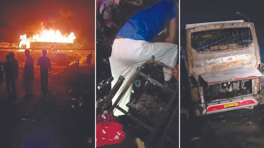 ਗੁਰੂਗ੍ਰਾਮ – ਉੱਤਰ ਪ੍ਰਦੇਸ਼ ਦੇ ਮਥੁਰਾ ਅਤੇ ਵ੍ਰਿੰਦਾਵਨ ਤੋਂ ਤੀਰਥ ਯਾਤਰਾ ਕਰਕੇ ਪਰਤ ਰਹੇ ਪੰਜਾਬ ਤੋਂ ਸ਼ਰਧਾਲੂਆਂ ਨਾਲ ਭਰੀ ਬੱਸ ਨੂੰ ਹਰਿਆਣਾ ਦੇ ਨੂਹ ਨੇੜੇ ਅੱਗ ਲੱਗ ਗਈ। ਅੱਗ ਲੱਗਣ ਕਾਰਨ 9 ਸ਼ਰਧਾਲੂ ਜ਼ਿੰਦਾ ਸੜ ਗਏ ਤੇ 15 ਜ਼ਖਮੀ ਹੋ ਗਏ। ਇਹ ਹਾਦਸਾ ਹਰਿਆਣਾ ਦੇ ਨੂਹ ਨੇੜੇ ਕੁੰਡਲੀ-ਮਾਨੇਸਰ-ਪਲਵਲ ਐਕਸਪ੍ਰੈਸ ਵੇਅ ’ਤੇ ਸ਼ੁੱਕਰਵਾਰ ਦੇਰ ਰਾਤ ਹੋਇਆ। ਜ਼ਖਮੀਆਂ ਨੂੰ ਨੂਹ ਮੈਡੀਕਲ ਕਾਲਜ ਲਿਆਂਦਾ ਗਿਆ ਹੈ। ਬੱਸ ਵਿੱਚ ਔਰਤਾਂ ਅਤੇ ਬੱਚਿਆਂ ਸਮੇਤ 60 ਤੋਂ ਵੱਧ ਲੋਕ ਸਵਾਰ ਸਨ। ਸਾਰੇ ਪੰਜਾਬ ਦੇ ਹੁਸ਼ਿਆਰਪੁਰ ਅਤੇ ਲੁਧਿਆਣਾ ਦੇ ਵਸਨੀਕ ਸਨ ਤੇ ਸਾਰੇ ਇੱਕ ਦੂਜੇ ਦੇ ਰਿਸ਼ਤੇਦਾਰ ਸਨ। ਸਥਾਨਕ ਲੋਕਾਂ ਨੇ ਬੱਸ ਨੂੰ ਅੱਗ ਲੱਗੀ ਦੇਖ ਕੇ ਗੱਡੀ ਦਾ ਪਿੱਛਾ ਕੀਤਾ ਅਤੇ ਡਰਾਈਵਰ ਨੂੰ ਬੱਸ ਰੋਕਣ ਲਈ ਕਿਹਾ।
