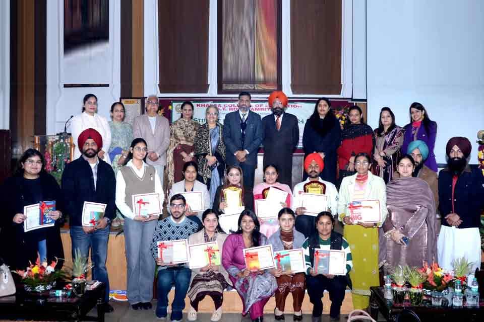 ਇਸ ਪ੍ਰੋਗਰਾਮ ਦੀ ਸ਼ਰੂਆਤ ’ਚ ਡਾ. ਕੁਮਾਰ ਨੇ ਆਏ ਸਮੂੰਹ ਮਹਿਮਾਨਾਂ ਨੂੰ ਫੁੱਲਾਂ ਦੇ ਗੁਲਦਸਤੇ ਭੇਂਟ ਕਰਨ ਉਪਰੰਤ ਕਿਹਾ ਕਿ ਸ. ਗੁਰਨਾਮ ਸਿੰਘ (ਸੰਸਥਾਪਕ ਪ੍ਰਿੰਸੀਪਲ, ਖ਼ਾਲਸਾ ਕਾਲਜ ਆਫ ਐਜੂਕੇਸ਼ਨ ਜੀ.ਟੀ. ਰੋਡ) ਦੀ ਯਾਦ ’ਚ ਸ਼ੁਰੂ ਕੀਤਾ ਗਿਆ ‘ਸਟੂਡੈਂਟ ਆਫ਼ ਦਾ ਯੀਅਰ ਐਵਾਰਡ’ ਇਕ ਵਿਸ਼ੇਸ਼ ਉਪਰਾਲਾ ਹੈ ਜੋ ਸਾਰੇ ਵਿਦਿਆਰਥੀਆਂ ਲਈ ਇਕ ਪ੍ਰੇਰਨਾ ਸਰੋਤ ਹੈ। ਉਨ੍ਹਾਂ ਸਮੂੰਹ ਵਿਦਿਆਰਥੀਆਂ ਨੂੰ ਵਧਾਈ ਦਿੰਦਿਆਂ ਭਵਿੱਖ ’ਚ ਵੀ ਇਕ ਚੰਗਾ ਅਧਿਆਪਕ ਬਣਨ ਦੇ ਨਾਲ-ਨਾਲ ਆਦਰਸ਼ ਨਾਗਰਿਕ ਬਣਨ ਲਈ ਵੀ ਪੇ੍ਰਰਿਤ ਕੀਤਾ। ਉਨ੍ਹਾਂ ਕਿਹਾ ਕਿ ਸਵੈ-ਵਿਸ਼ਵਾਸ, ਜੋਸ਼ ਅਤੇ ਜਨੂੰਨ ਇਕ ਵਿਅਕਤੀ ਵਿਸ਼ੇਸ਼ ਲਈ ਸਫਲਤਾ ਦਾ ਗੁਰ ਮੰਤਰ ਹੈ ਅਤੇ ਹਰੇਕ ਵਿਦਿਆਰਥੀ ਨੂੰ ਇਨ੍ਹਾਂ ਦਾ ਧਾਰਨੀ ਹੋਣਾ ਚਾਹੀਦਾ ਹੈ।